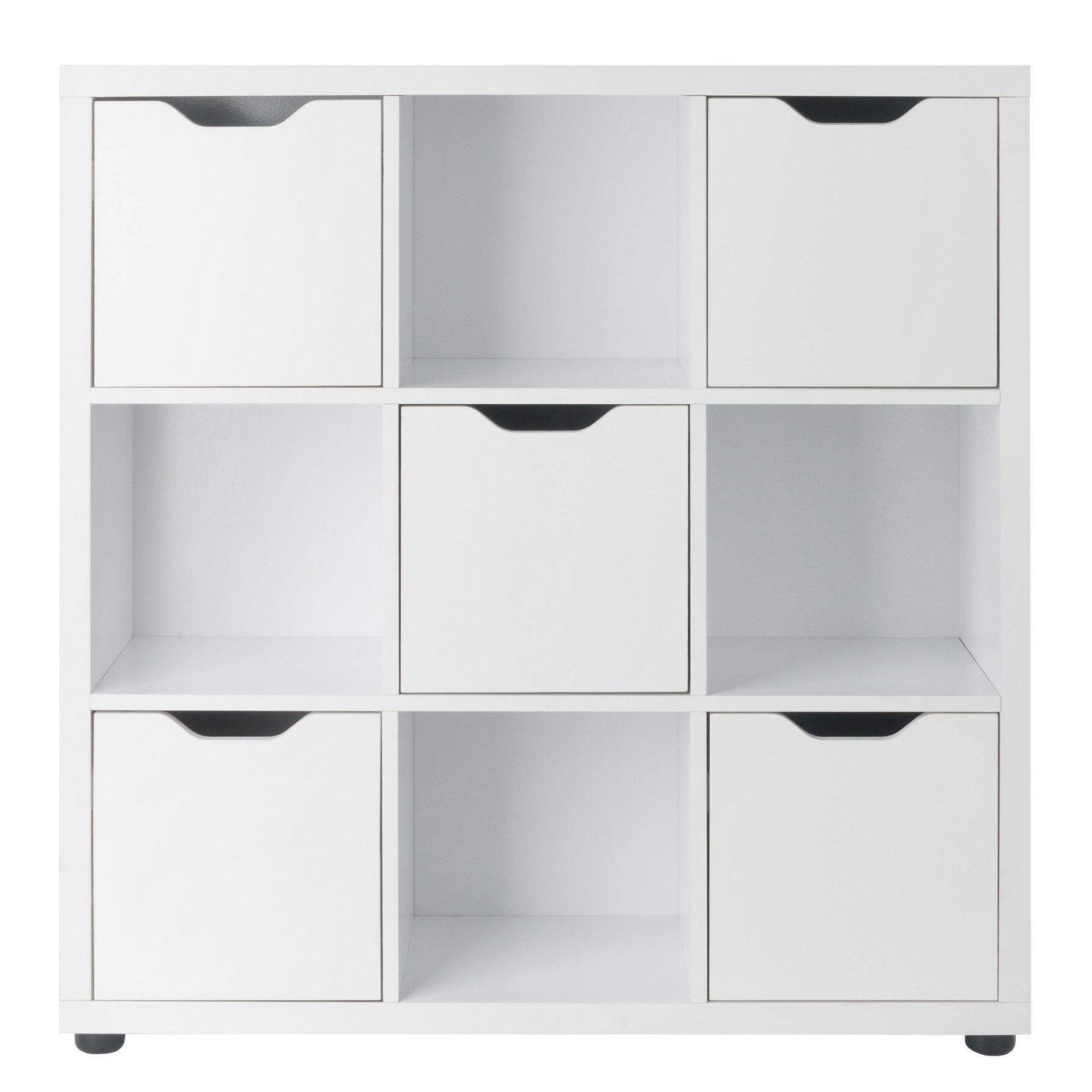 The Julian 3x3 Storage Cabinet by Winsome Wood is the answer to any and all organizational needs. With a total of 9 spacious compartments, the cabinet is ideal for a mudroom, garage, craft area, family room or kids' bedrooms. Use all the compartments for storage, or combine them with display in the open cubbies. Made of sturdy composite wood, the cabinet has a clean, white finish and comes with attachable rubber feet to prevent floor scratches. Add any of Winsome's foldable baskets to give the cabinet extra flare.