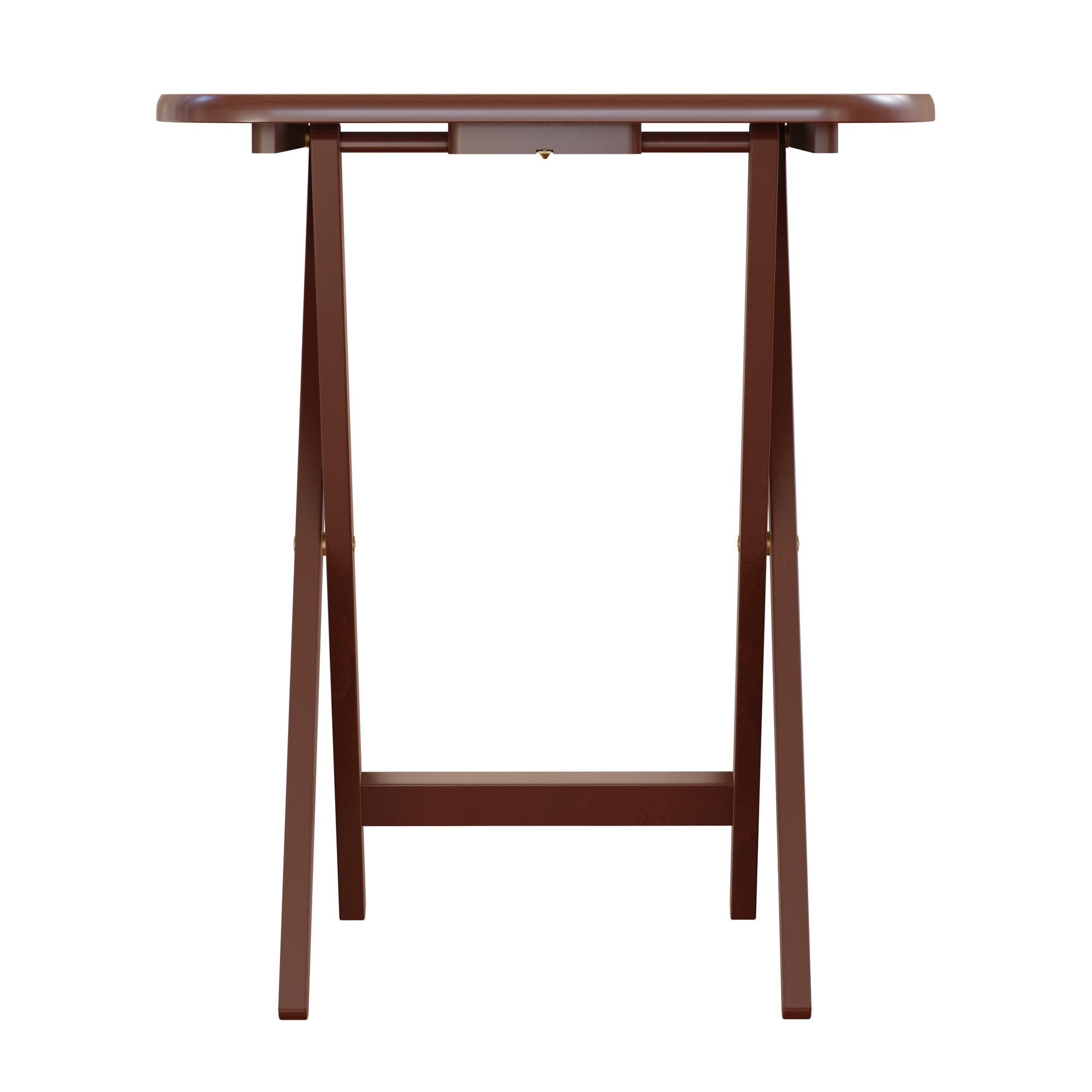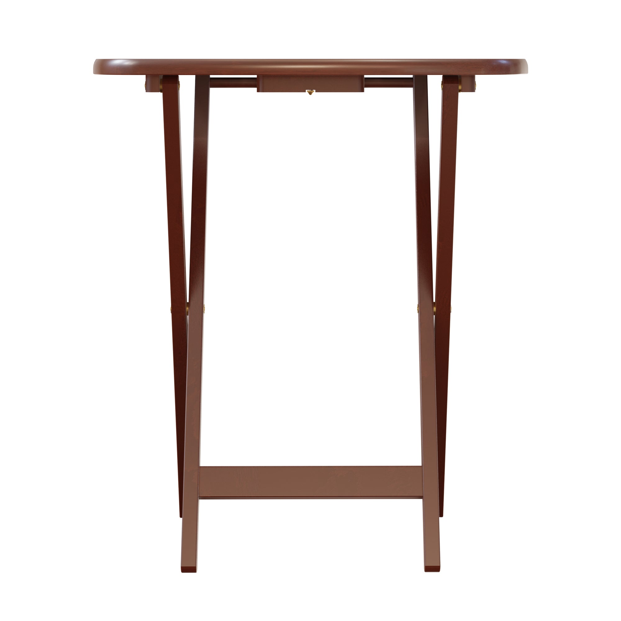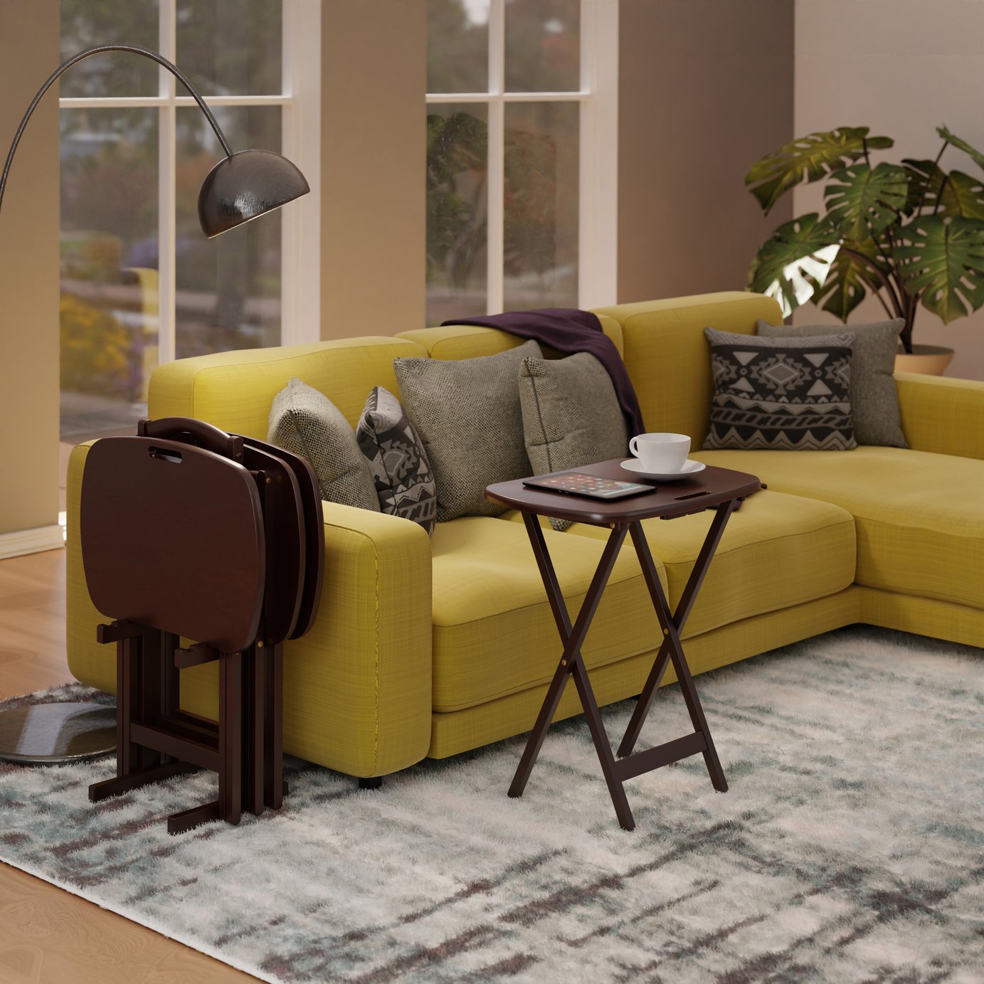 The Lucca 5-Pc TV Table Set is elegantly designed with portability in mind. The cutout handles in the table top allows for quick and easy handling to lift off the stand or move them to different locations.