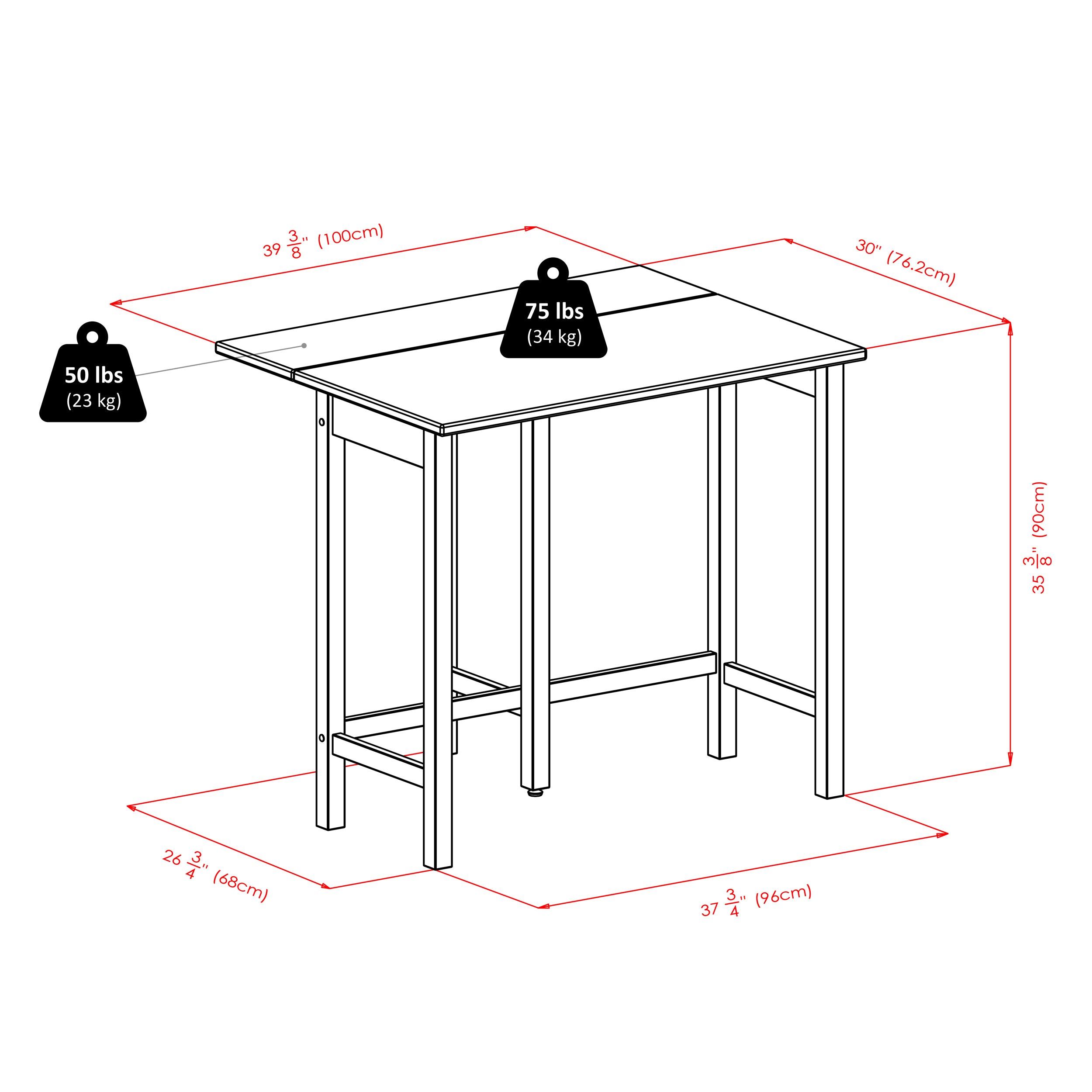 - Folded size 39.34"W x 20.7"D x 35.4"H