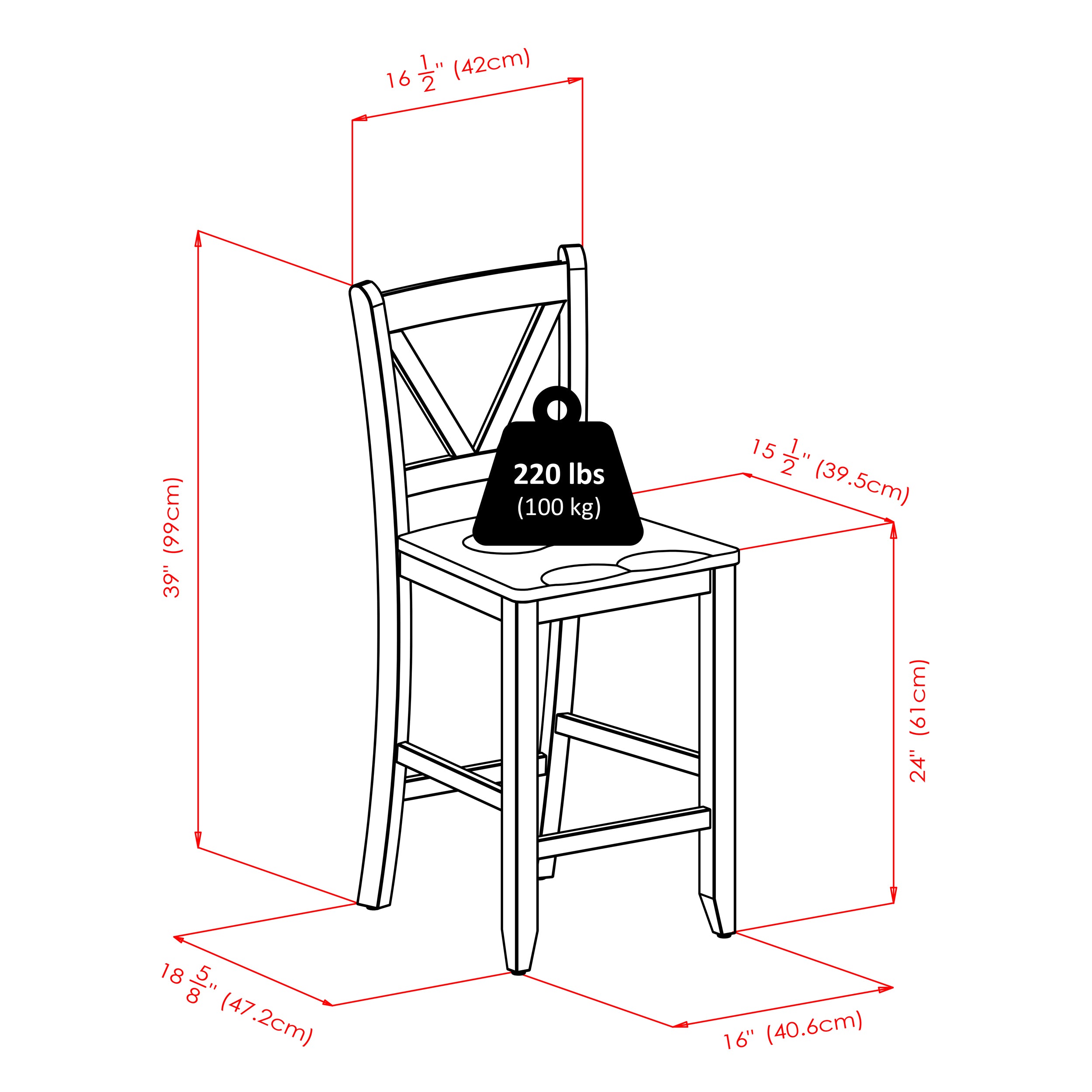 - Include 2 V Back Counter Stool 16.54"W x 19.21"D x 39.17"H