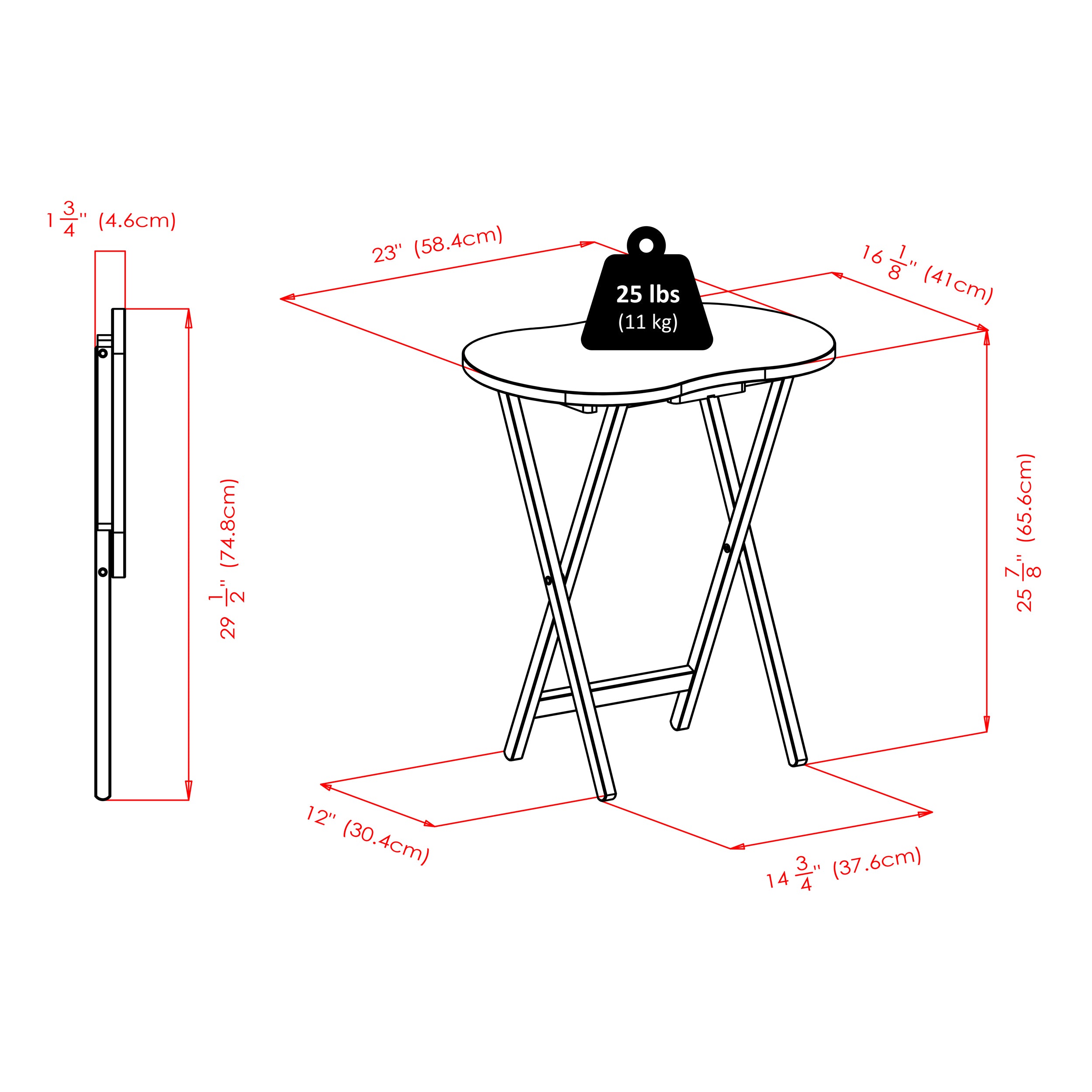 - Tray Table opens size is 23"W x 16.14"D x 25.83"H. Tray closed at 23"W x 1.81"D x 28.98"H