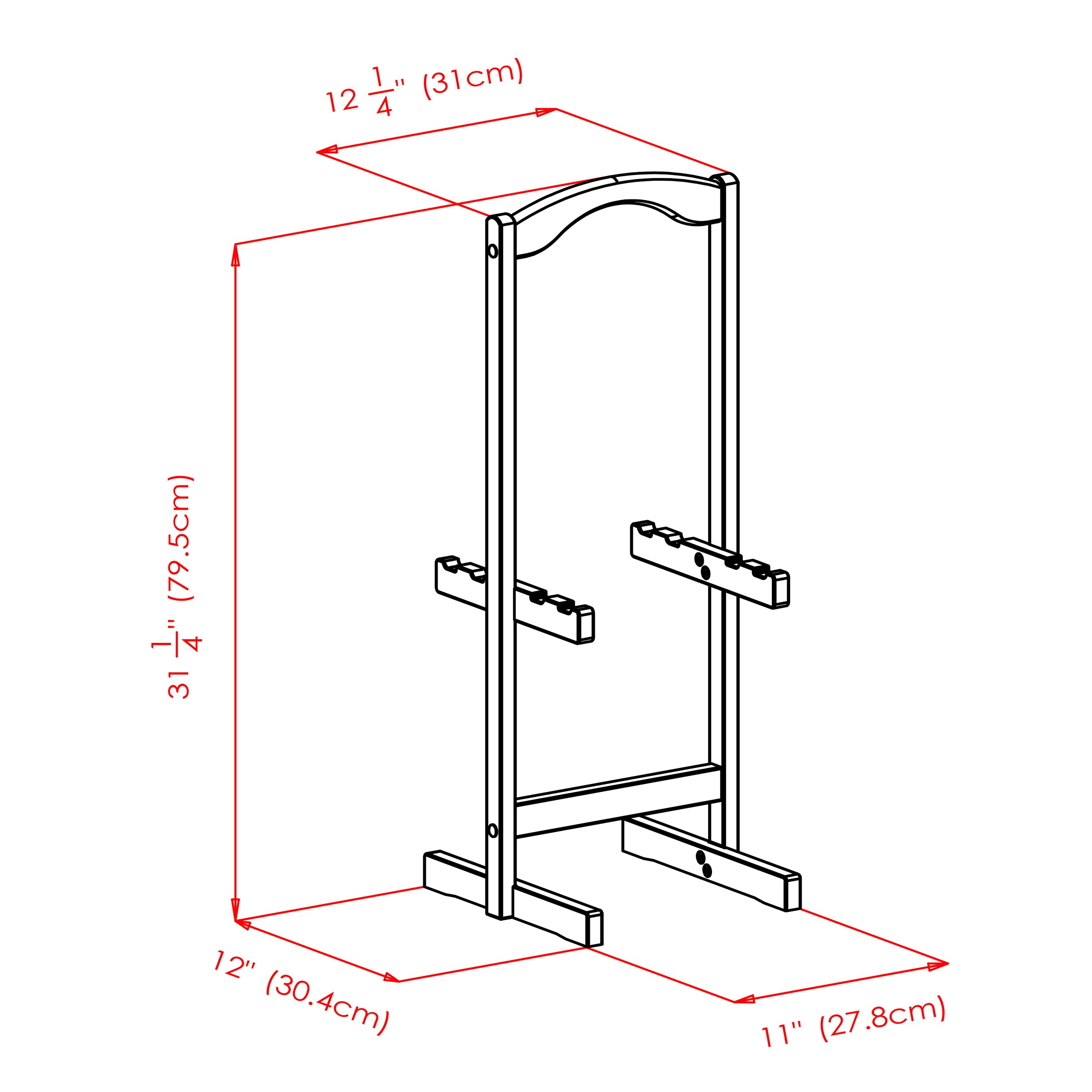 - Rack loaded with TV Tables size is 23"W x 12"D for storage. Made of solid wood in black finish.