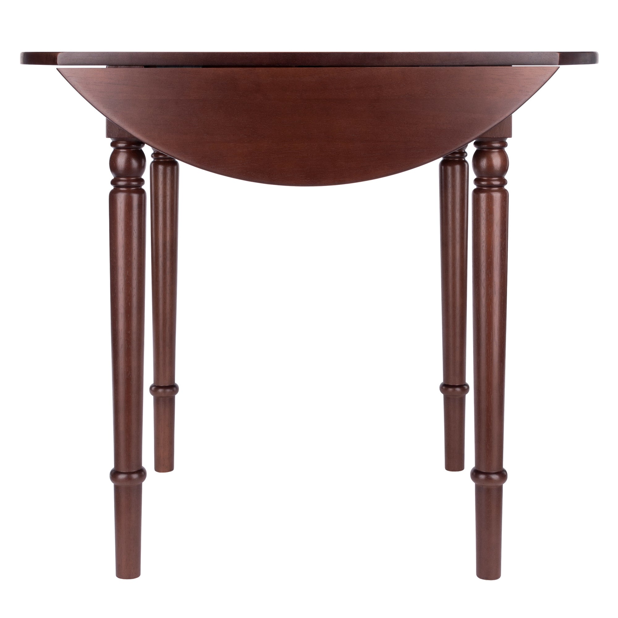 Bring classic into your kitchen or dining area with the Sorella Round Drop Leaf Table. Simplicity combined with a craftsmanship design. Graceful detail on the legs and two drop leaves allows this dining table to easily convert into a lovely console table for displaying. Solid wood construction in rich walnut finish.