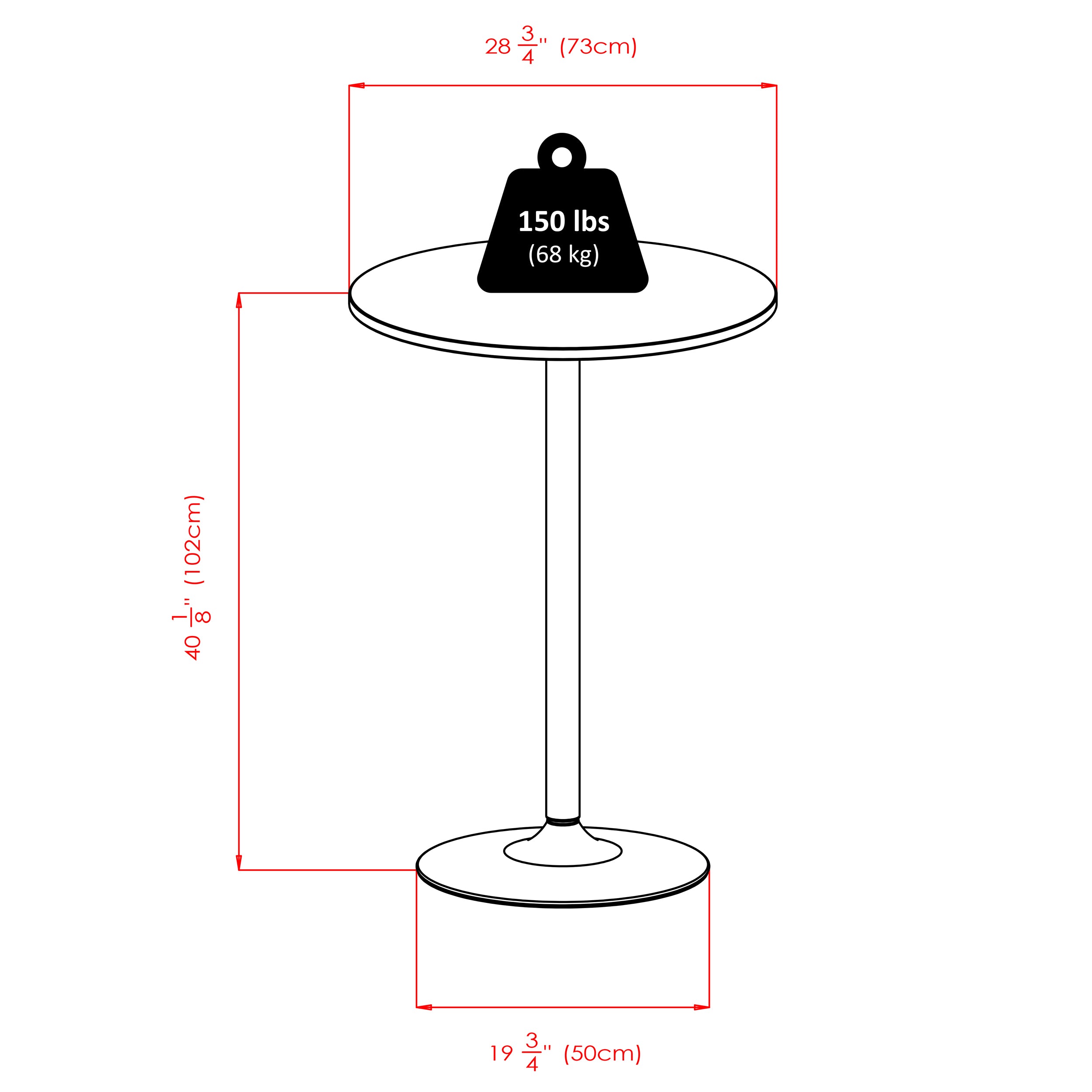 - Wood Veneer Top, MDF, round table top has surface of 28.74" diameter and stands at 40.16" High.