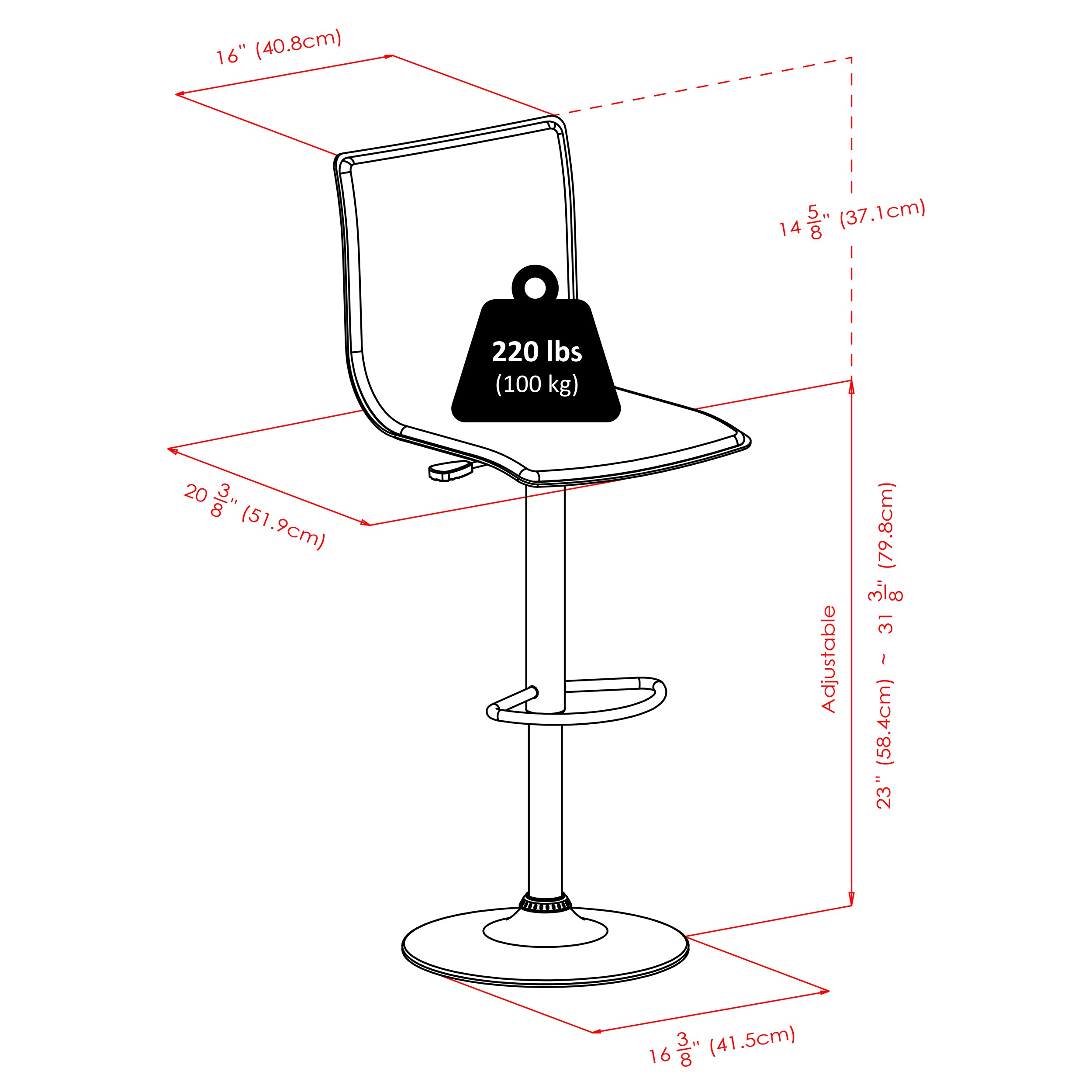 - Comes with 2 L-Back Stool adjusts 22.70" to 30.70" High. Overall size 16.34"W x 20"D x 45.08"H