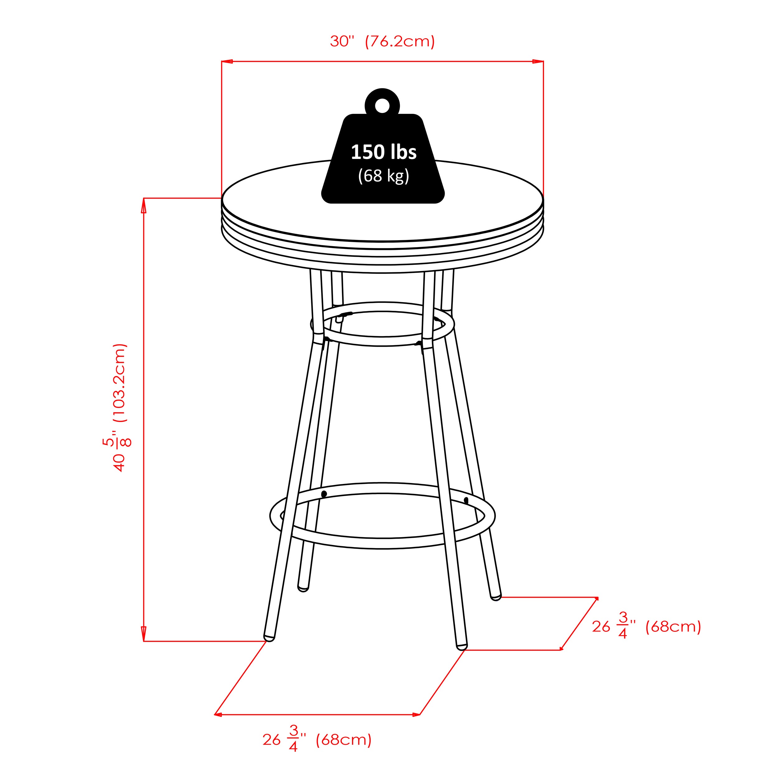 - Overall Pub table size is 30" Round and 40.55" Tall.