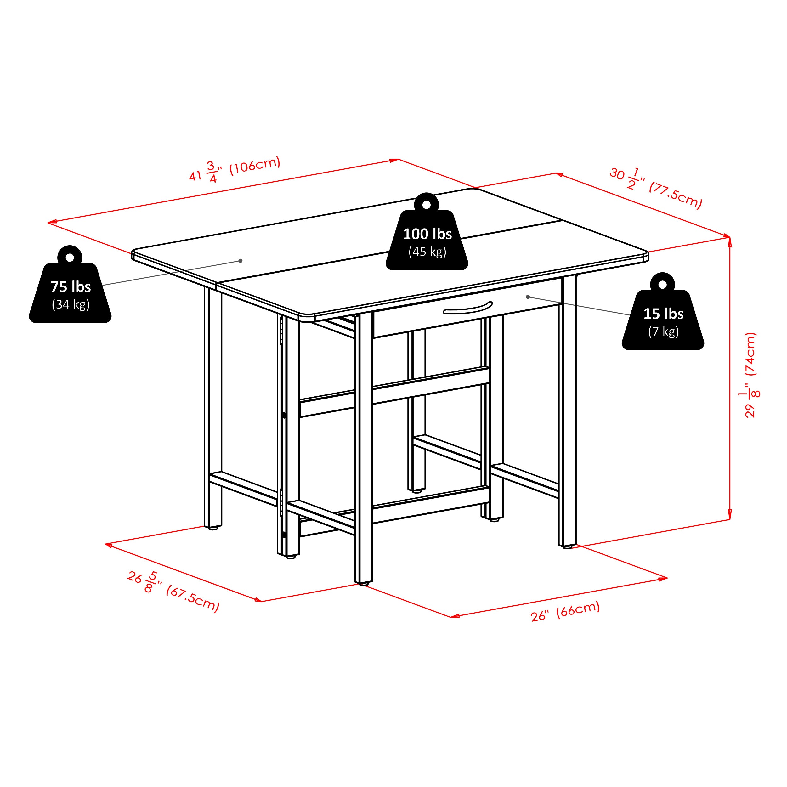 Simple elegance and versatility define the Taylor Drop Leaf Table. Use it as a console in the dining area or kitchen with the drop leaf down. Lift the drop leaf to double the table size for dining. It's also an ideal addition to the family room to spread out games, puzzles, or to use as an additional workspace. The table-wide drawer provides storage for silverware, placemats, games, or personal electronic devices. The table top and frame are made of solid wood for long lasting durability. Overall size with drop leaf extended 41.7"W x 30.5"D x 29"H.