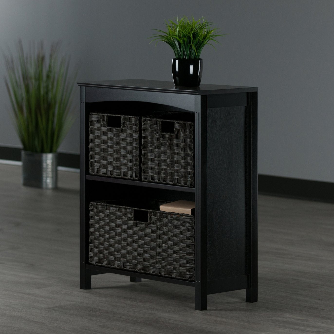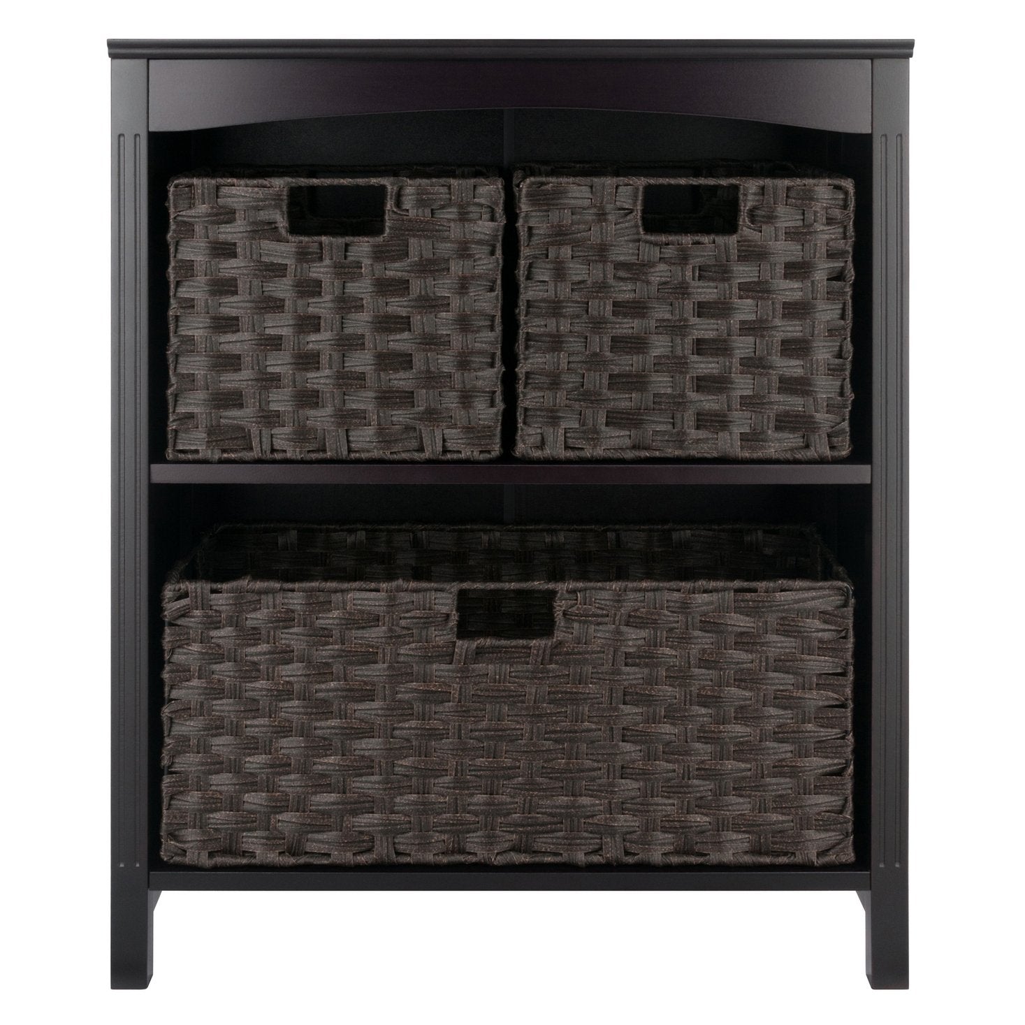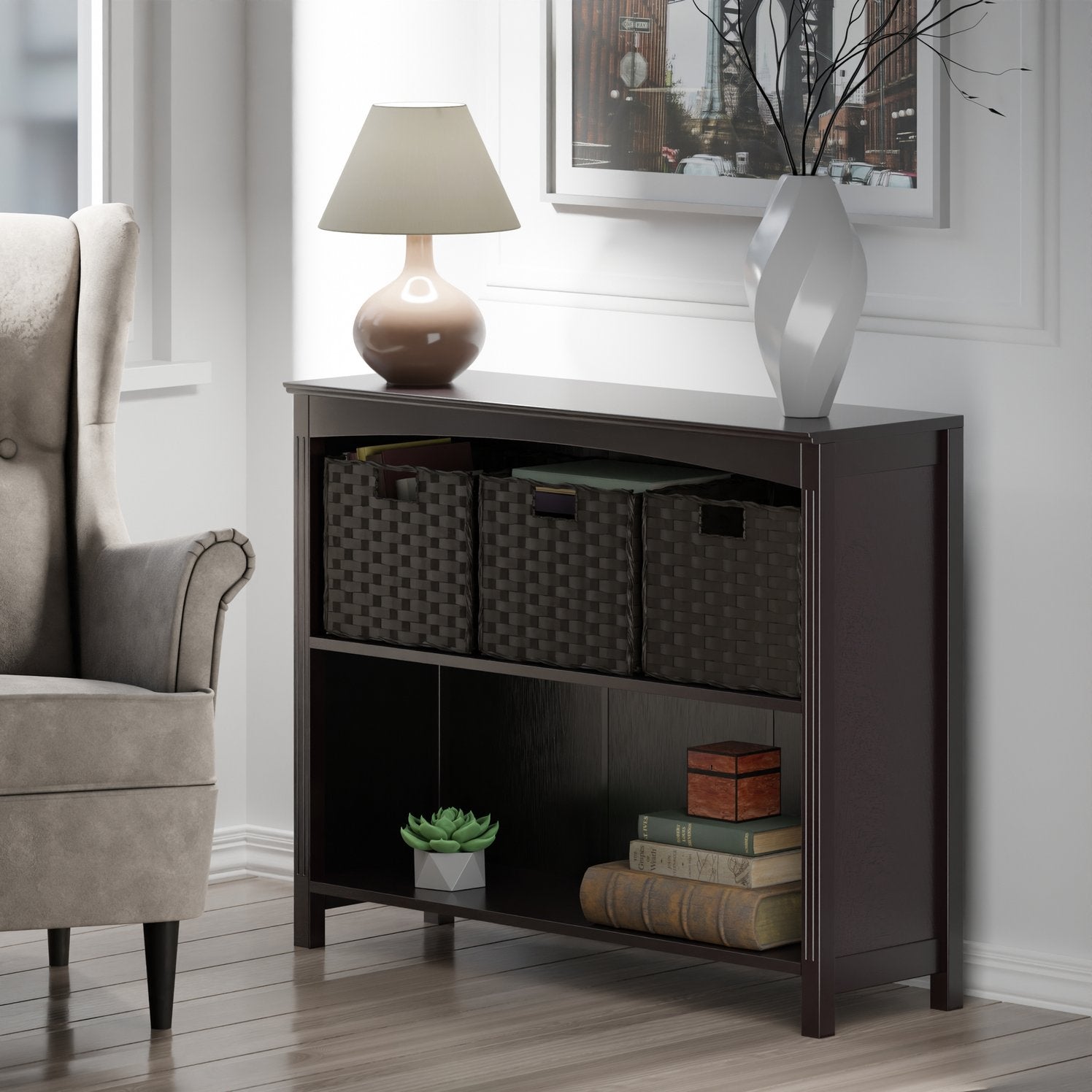 Spacious shelf ideal for displaying your treasure or storage your books. Simple and elegant design that includes 3 baskets for added organization.