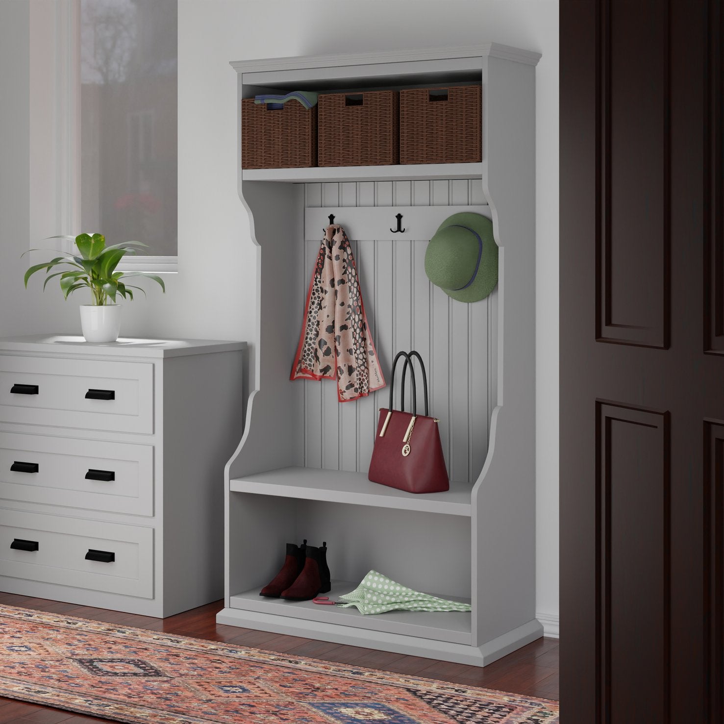 - Baskets fold for quick, easy storage