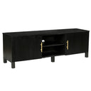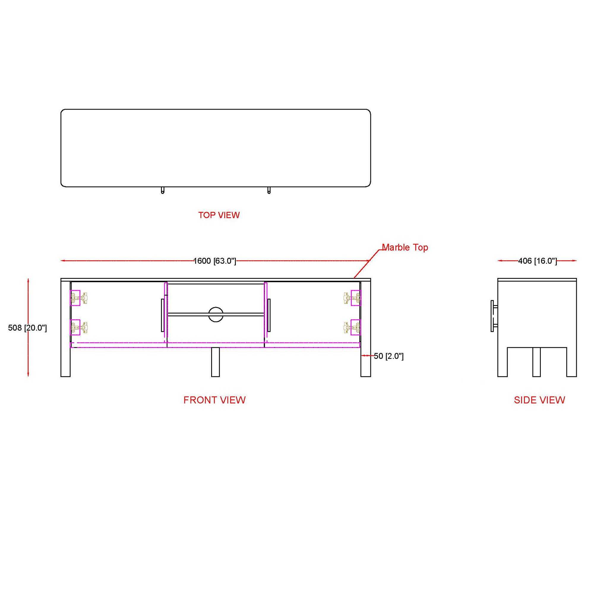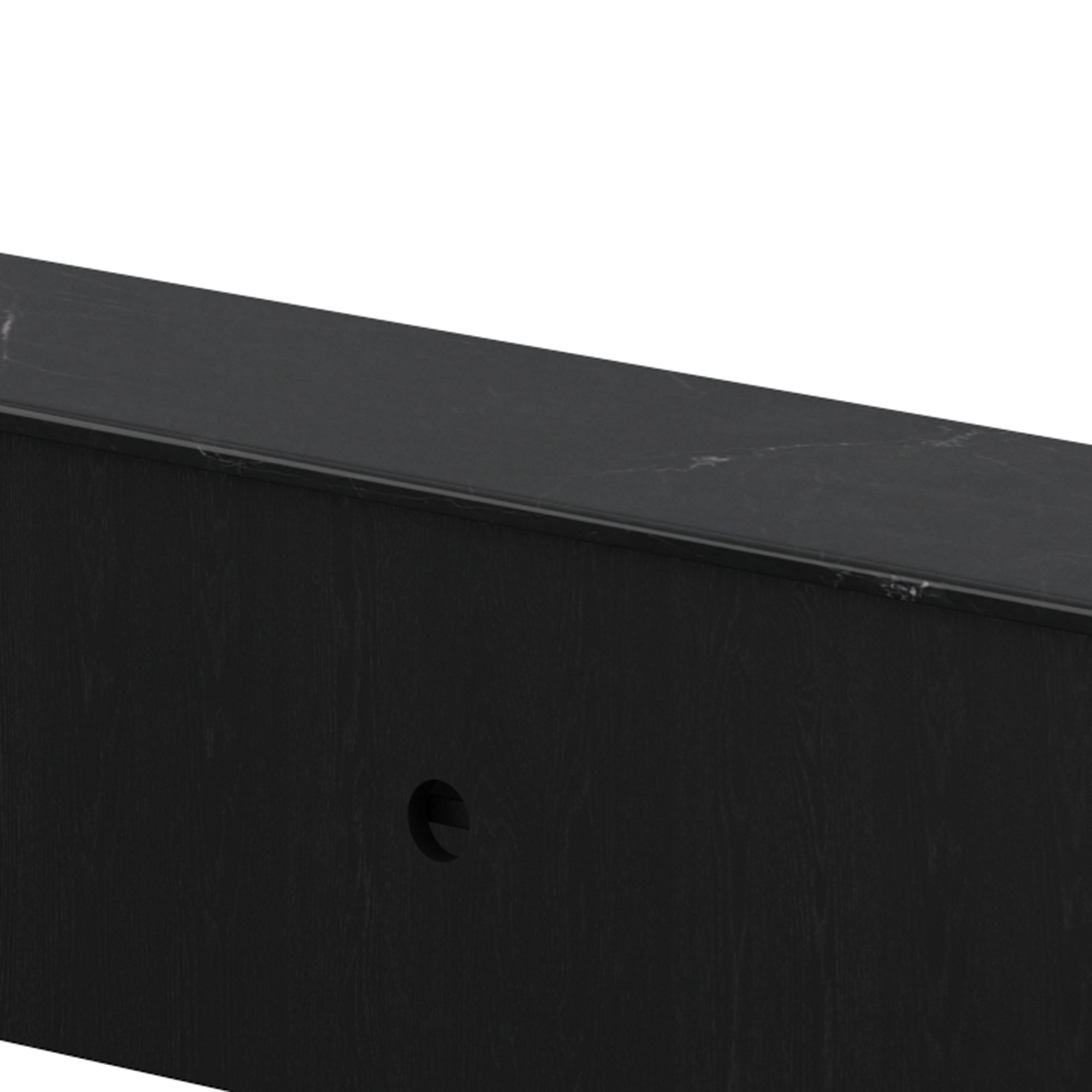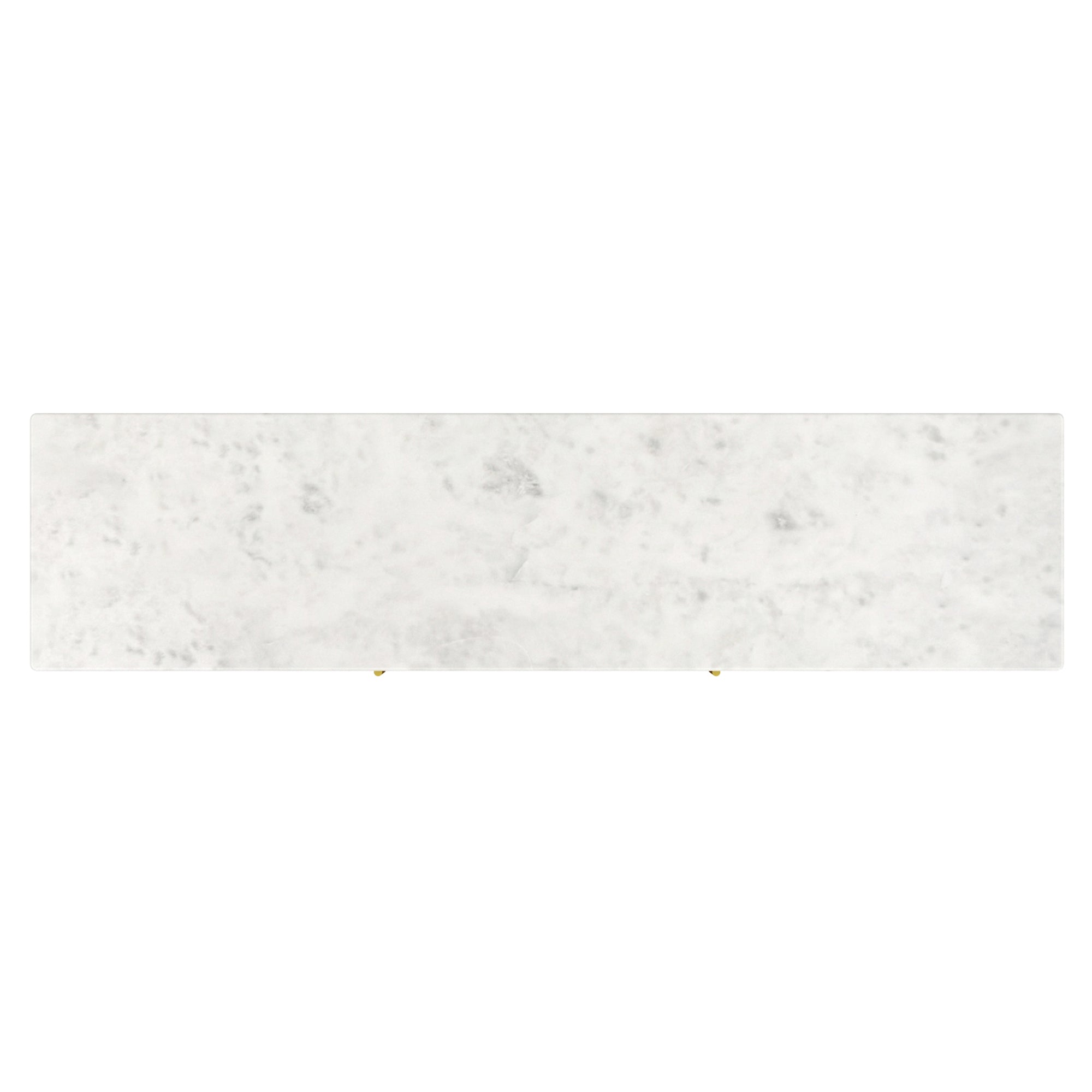 - Fixed centre shelf with cable access, 2-door cabinets with aged gold hardware