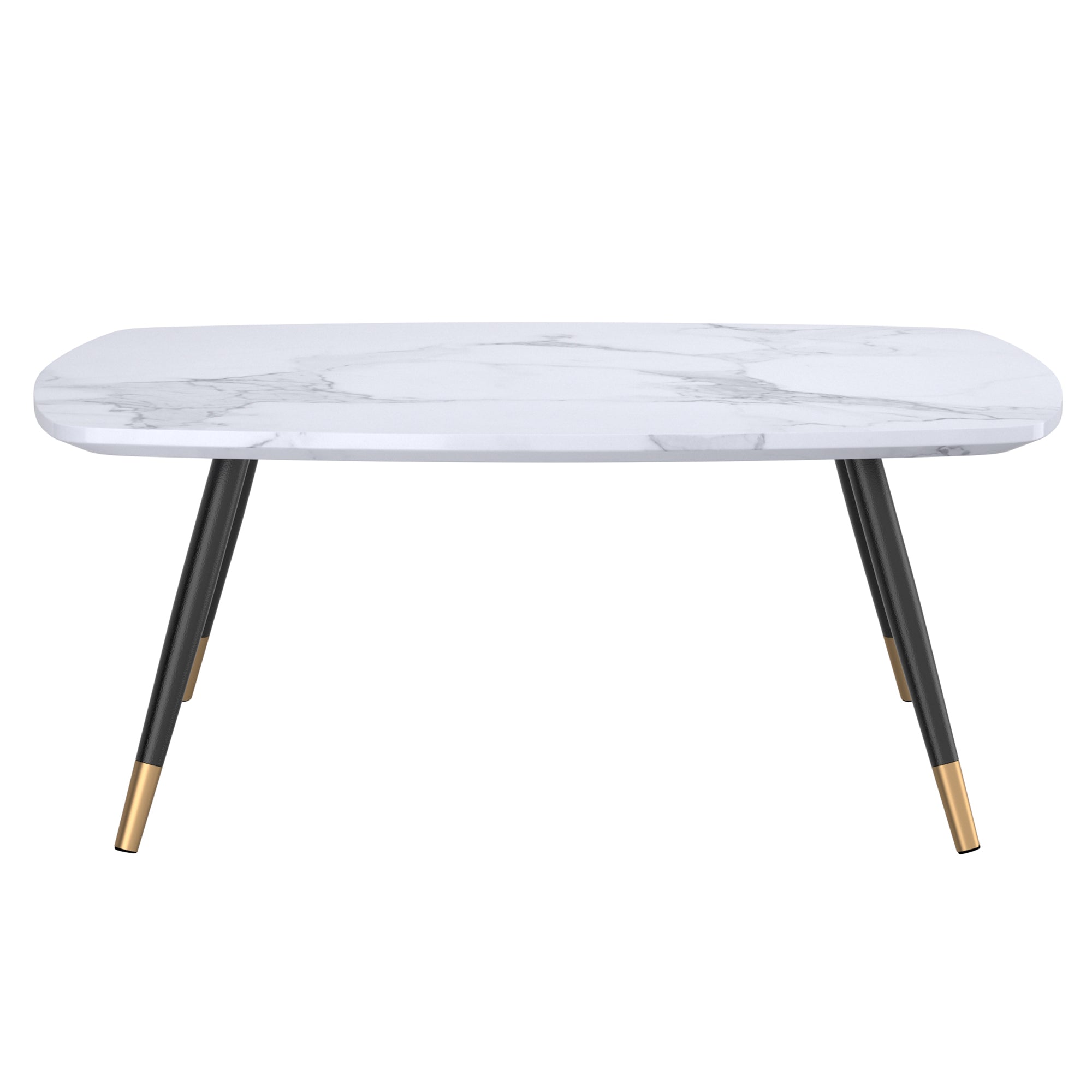 - Engineered wood table top with laminated veneer in a faux marble finish