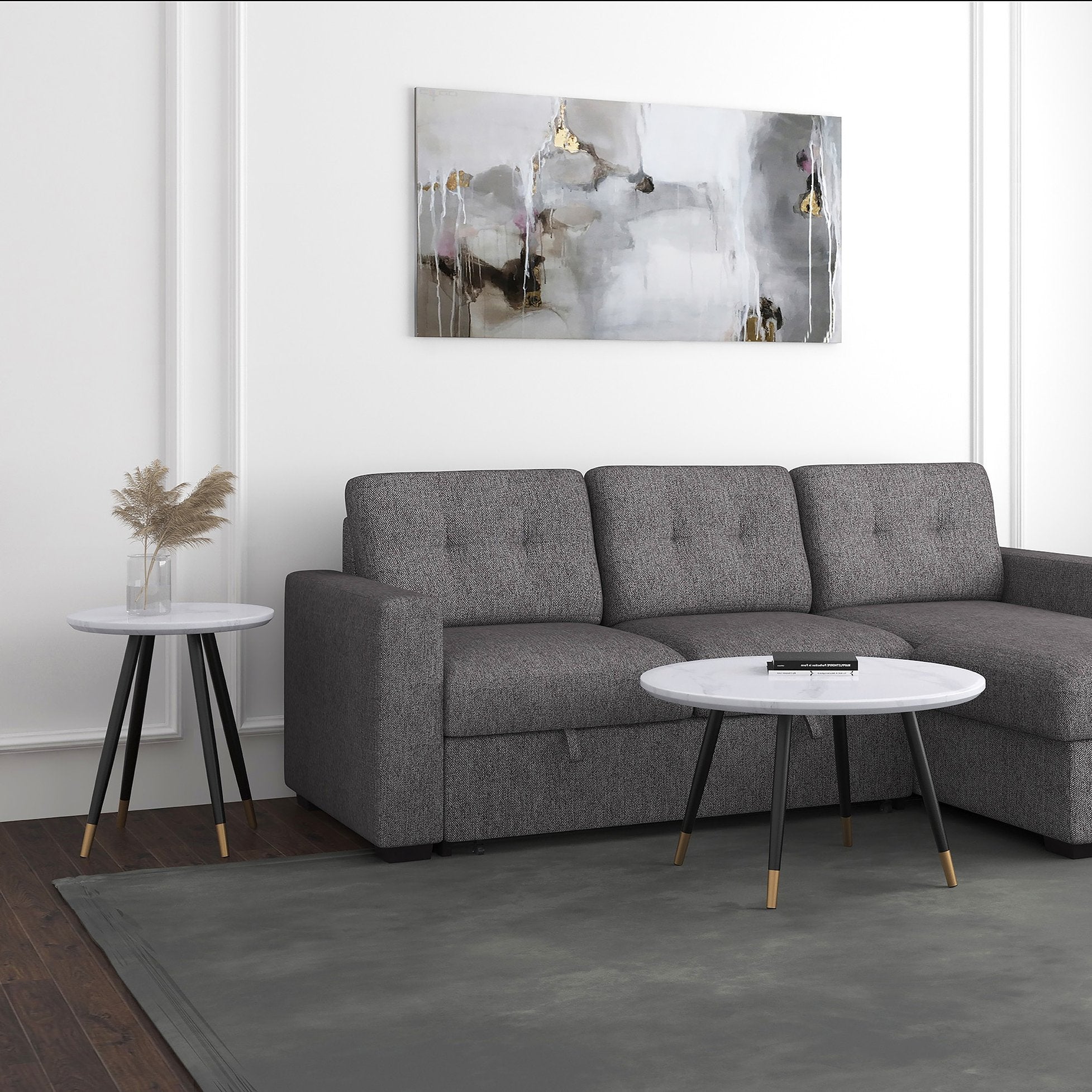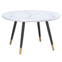 - Engineered wood table top with laminated veneer in a faux marble finish