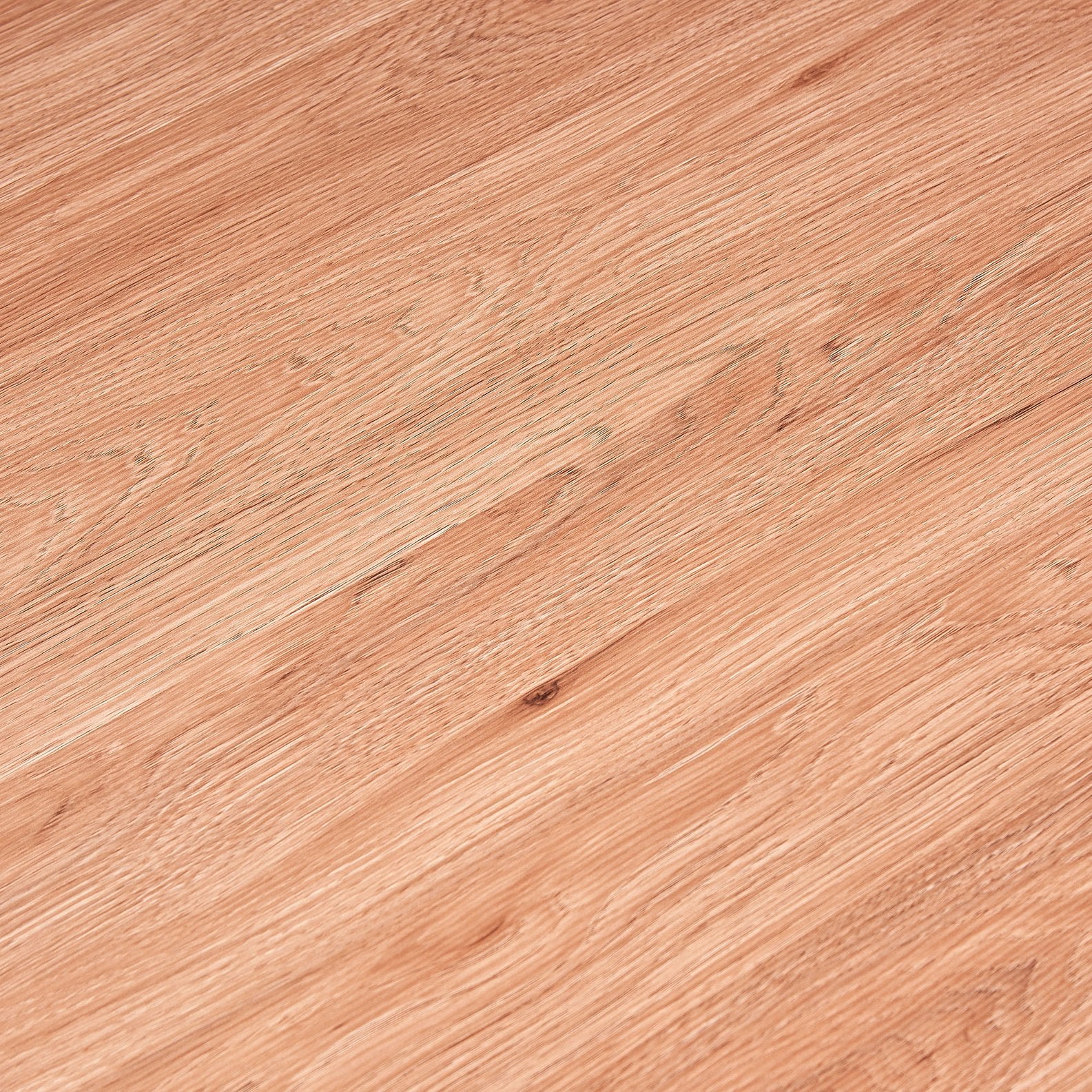 - Solid engineered wood table top with laminated veneer in a natural wood grain