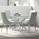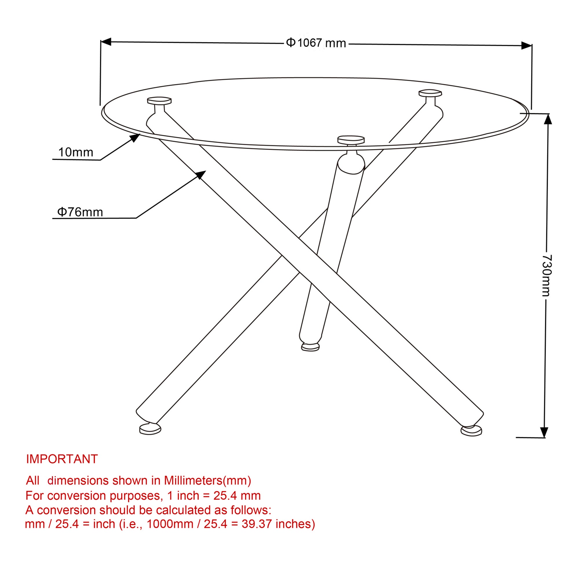 - 10mm clear, tempered glass top with brushed stainless steel accent