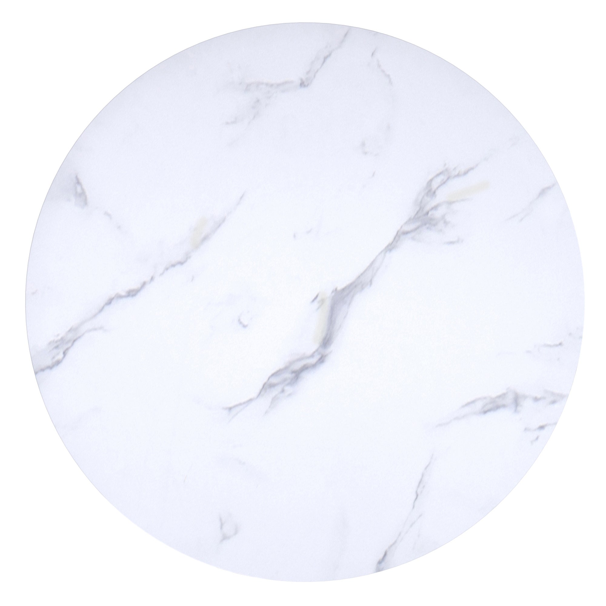 - Engineered wood table top with laminated veneer in a faux marble finish