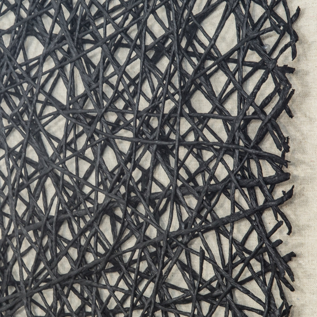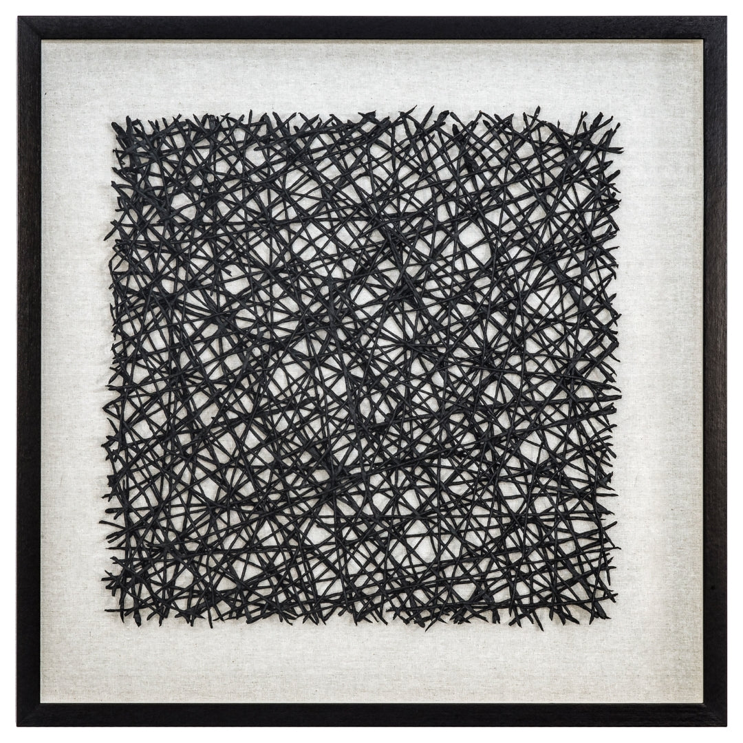 - Feature #1: Random Abstract Pattern Created With A Black Paper Twine, Square Cut And Placed On The Contrasting Off-White Linen Background. Framed And Covered With Glass.