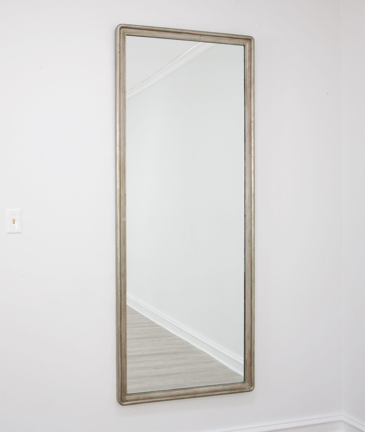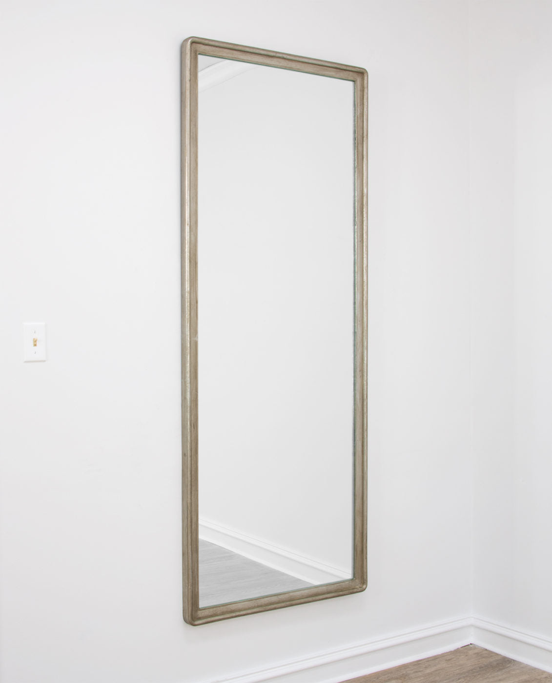 This beautiful floor length mirror is plain simple and classy. The mirror pairs modern elegance with vintage charm. A tall mirror is perfect for full body viewing, it can be hung as a large wall mirror or leaned against a wall to see your entire reflection. It can also be used as a way to bring light and space into a room. Adding an oversized mirror can make your space appear larger and more inviting, especially if placed in a foyer or living room or bedroom.
