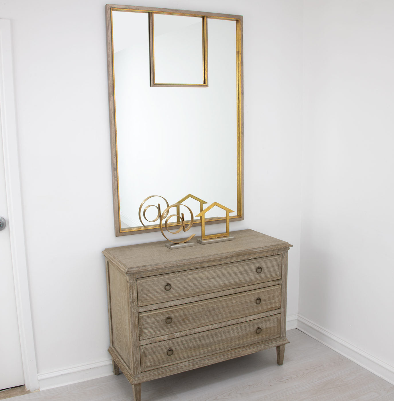 - finish: Distressed champagne finish with Gold Leaf