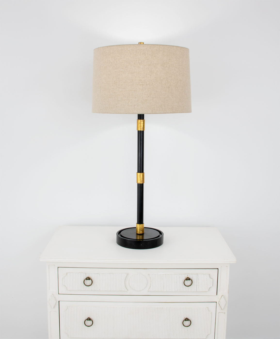 Elegant looking black and gold table lamp, perfect for bedside table or any place in the house