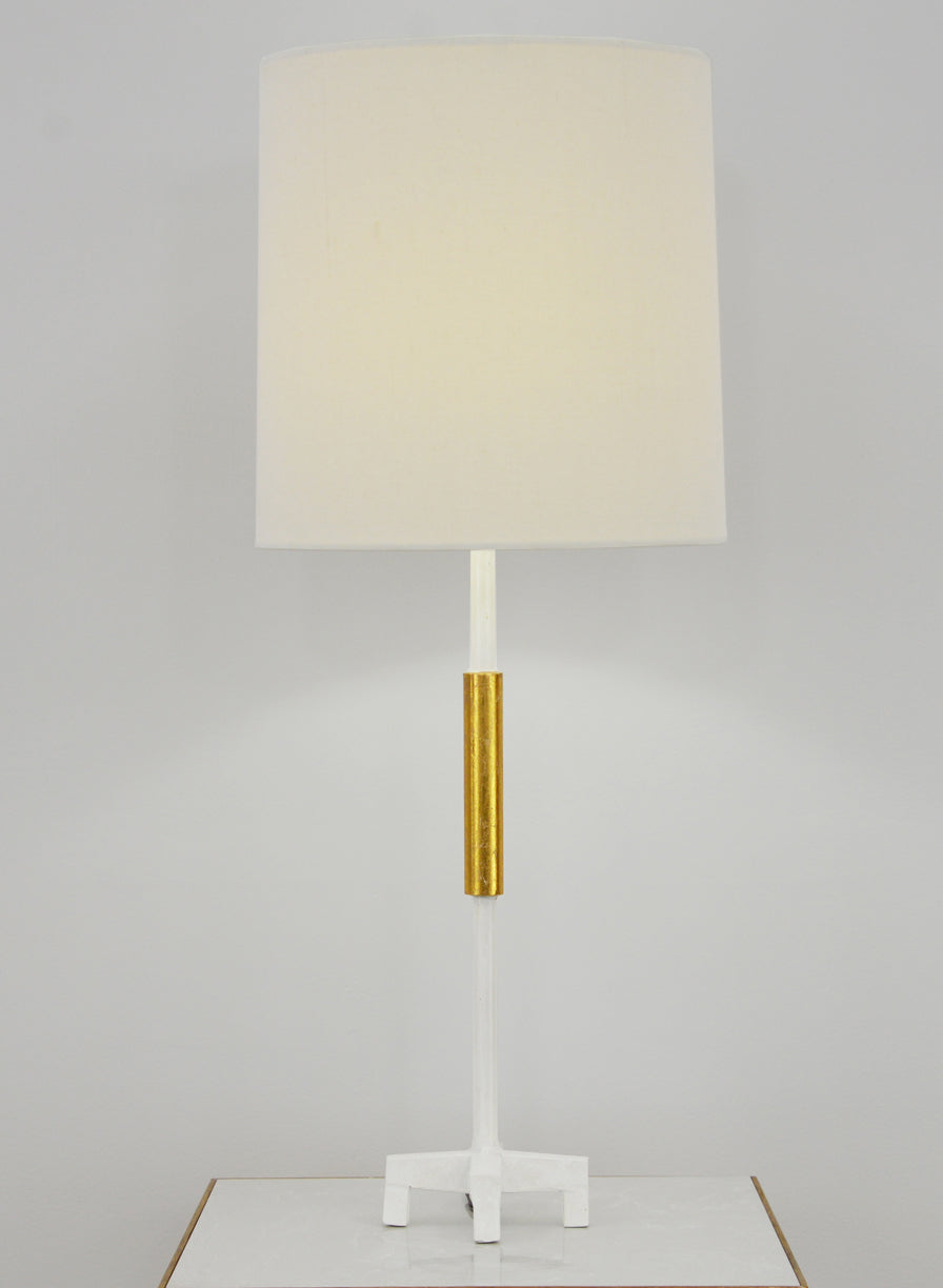 The simple, clean design of the white & gold base makes this a classic, timeless design. Handmade and hand-finished gold leaf, this table lamp is ideal for your living room, bedroom, child’s room, or office.