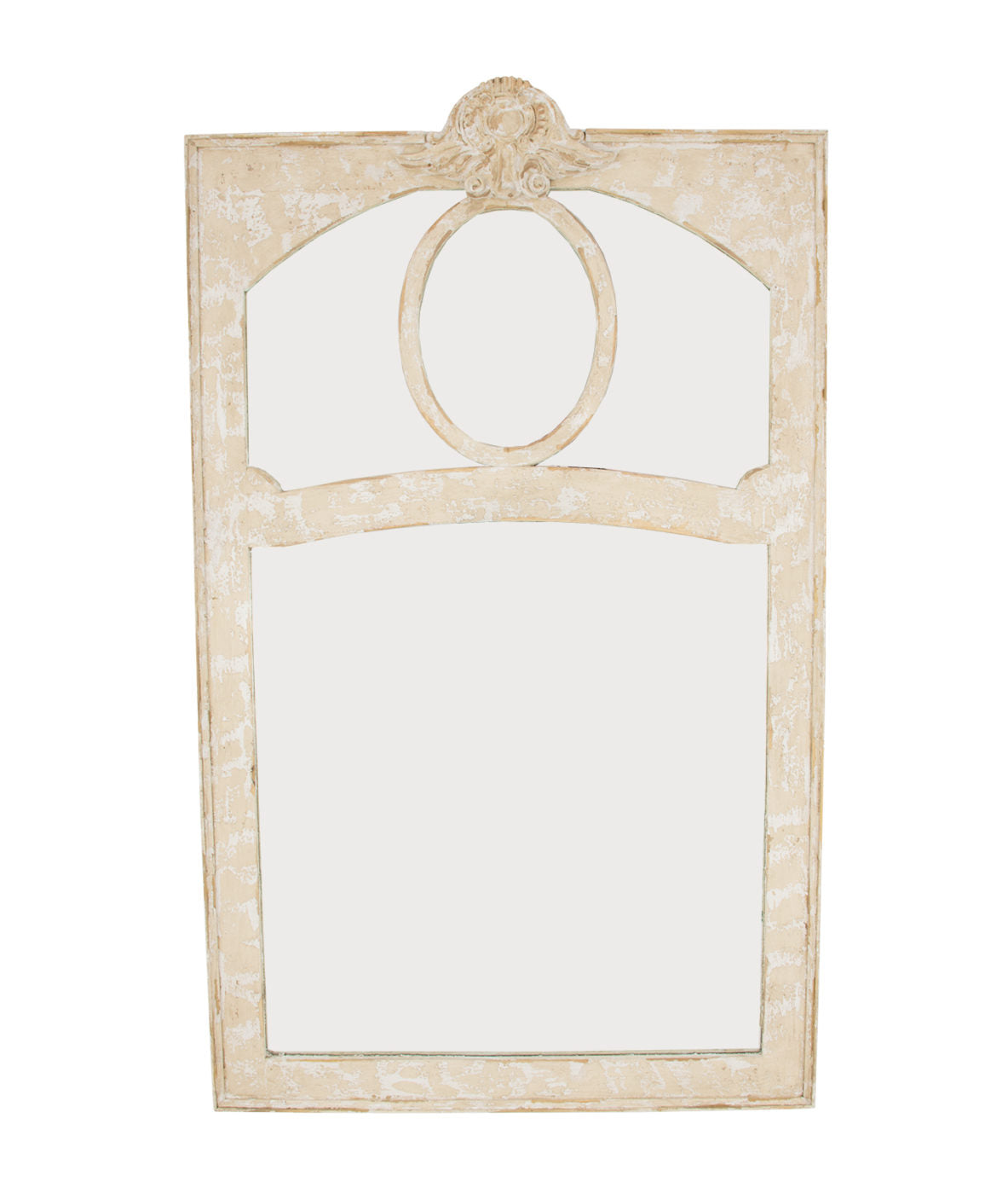 - Finish: Distressed cream finish with white wash