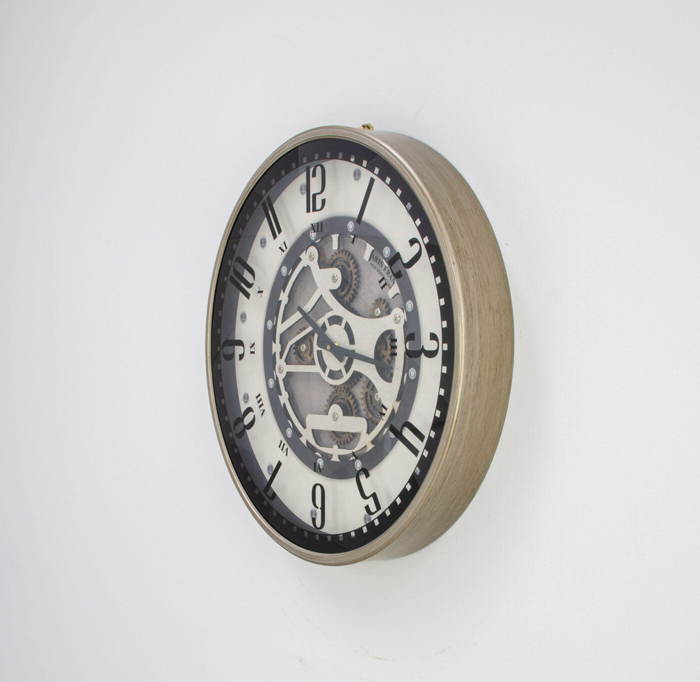 - color: Antiqued Silver Frame, White background with black numerals, Antiqued Bronze Mechanism