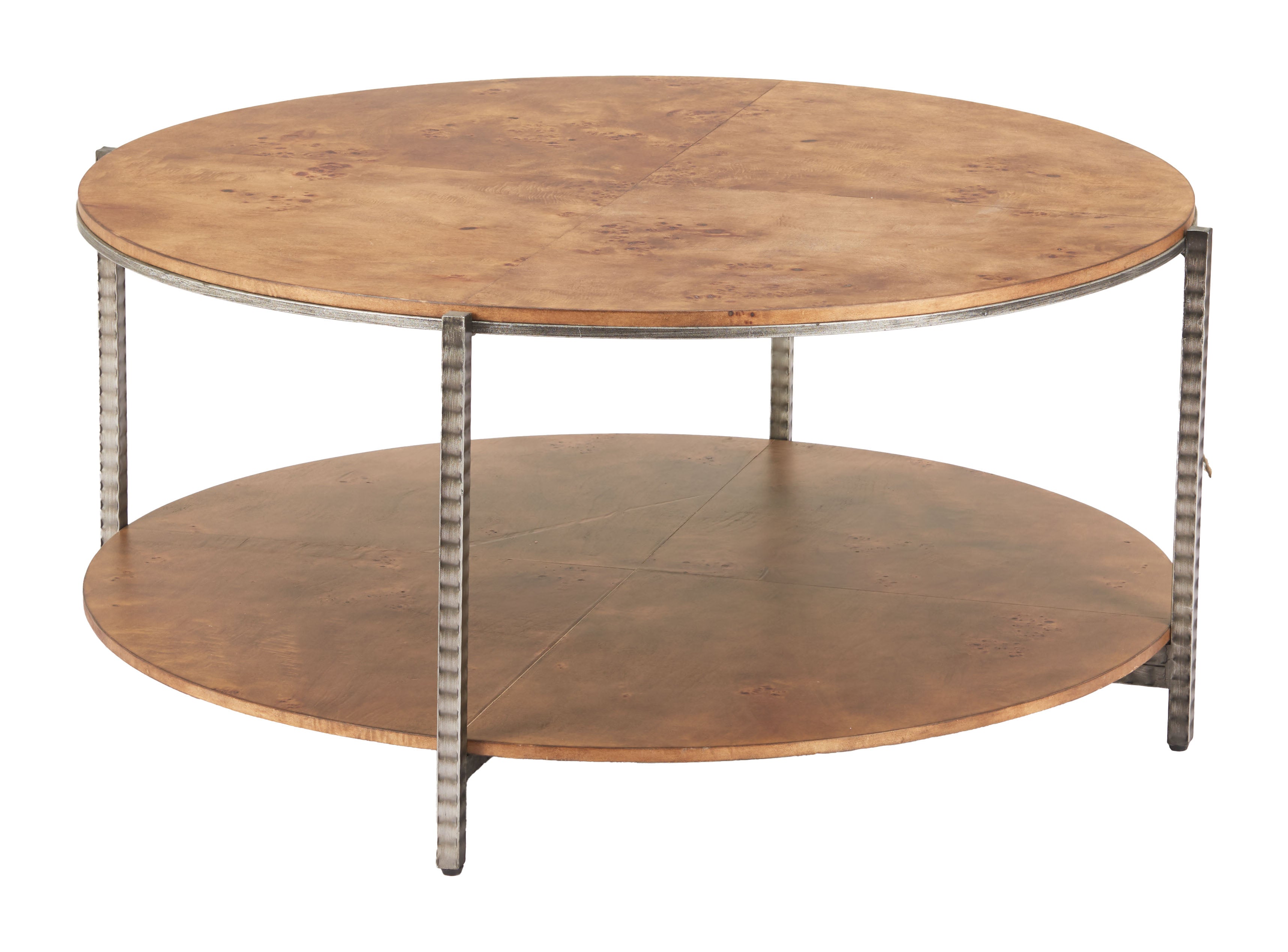 - Assembly required, Burl Veneer MDF round shape tabletop, Distance between shelves: 13", Support up to 20 lb