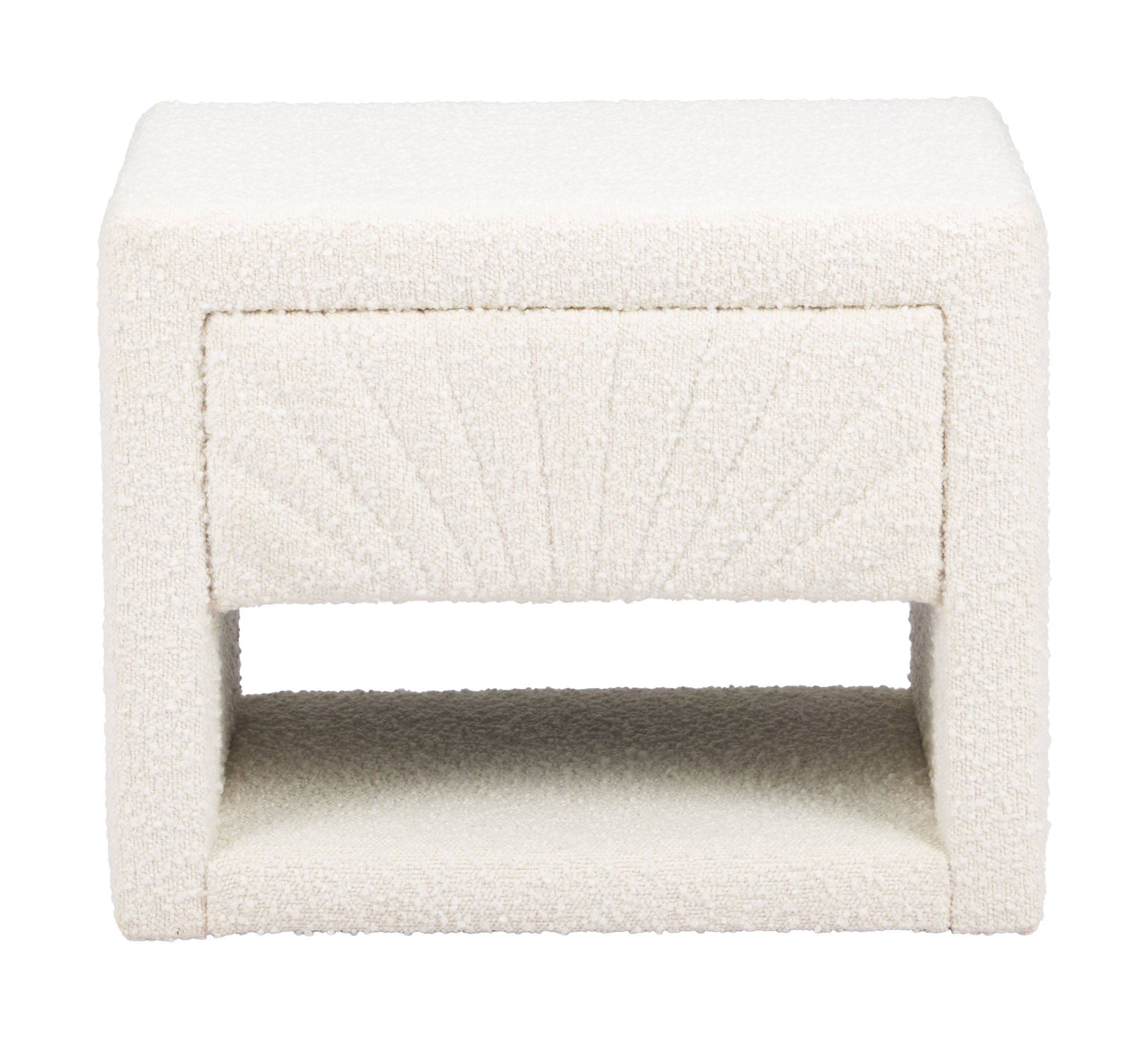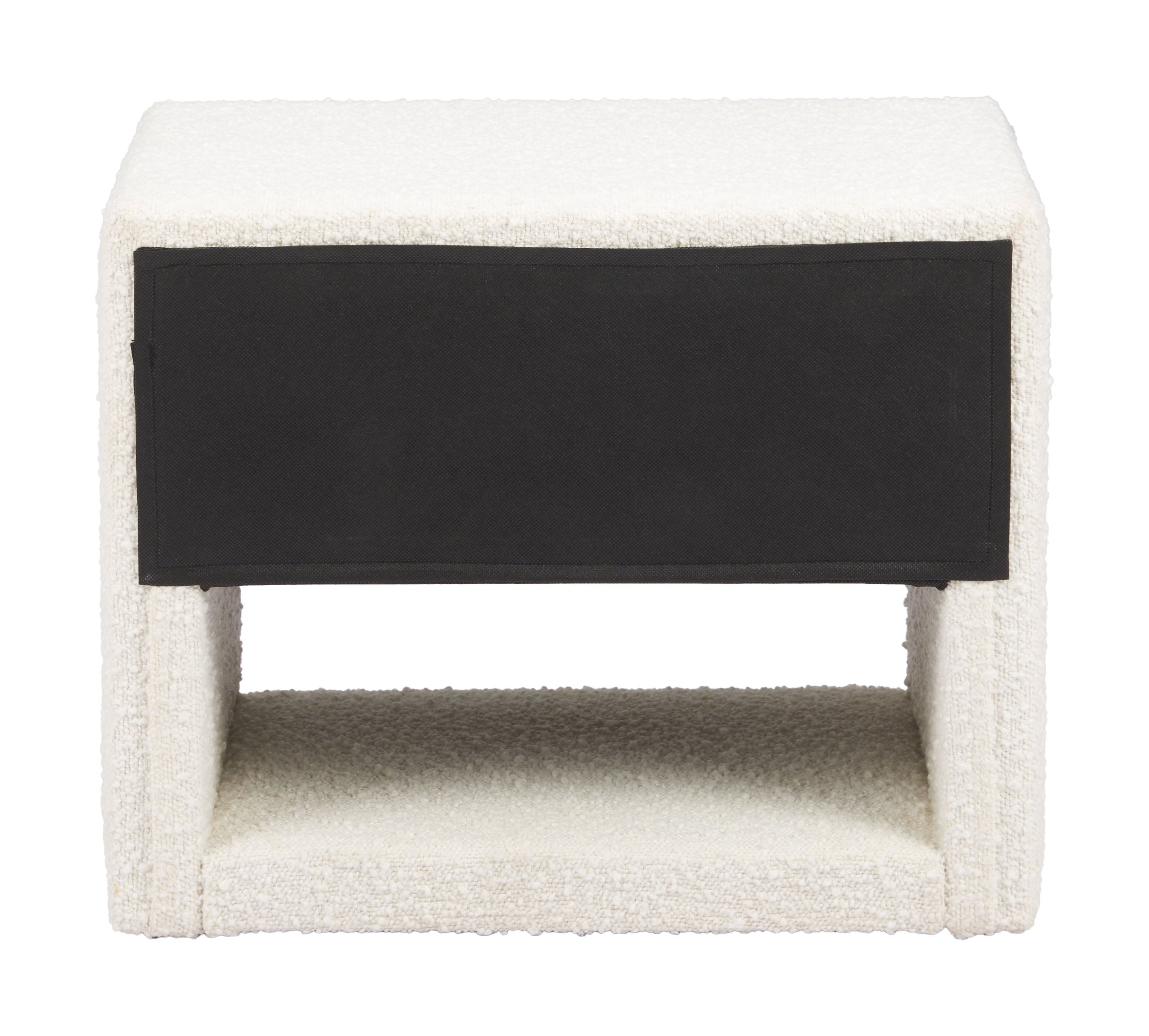 - Assembly not required, Textured Fabric 100% Polyester rectangular shape tabletop, Rubber feet protect floor from scratches, Drawer: 15.7" W x 6.5" H (outer), Drawer: 13.8" W x 10.8" D x 4.1" H (inner), Bottom Shelf: 15.7" W x 14.2" D x 5.5" H, Support up to 505 lb
