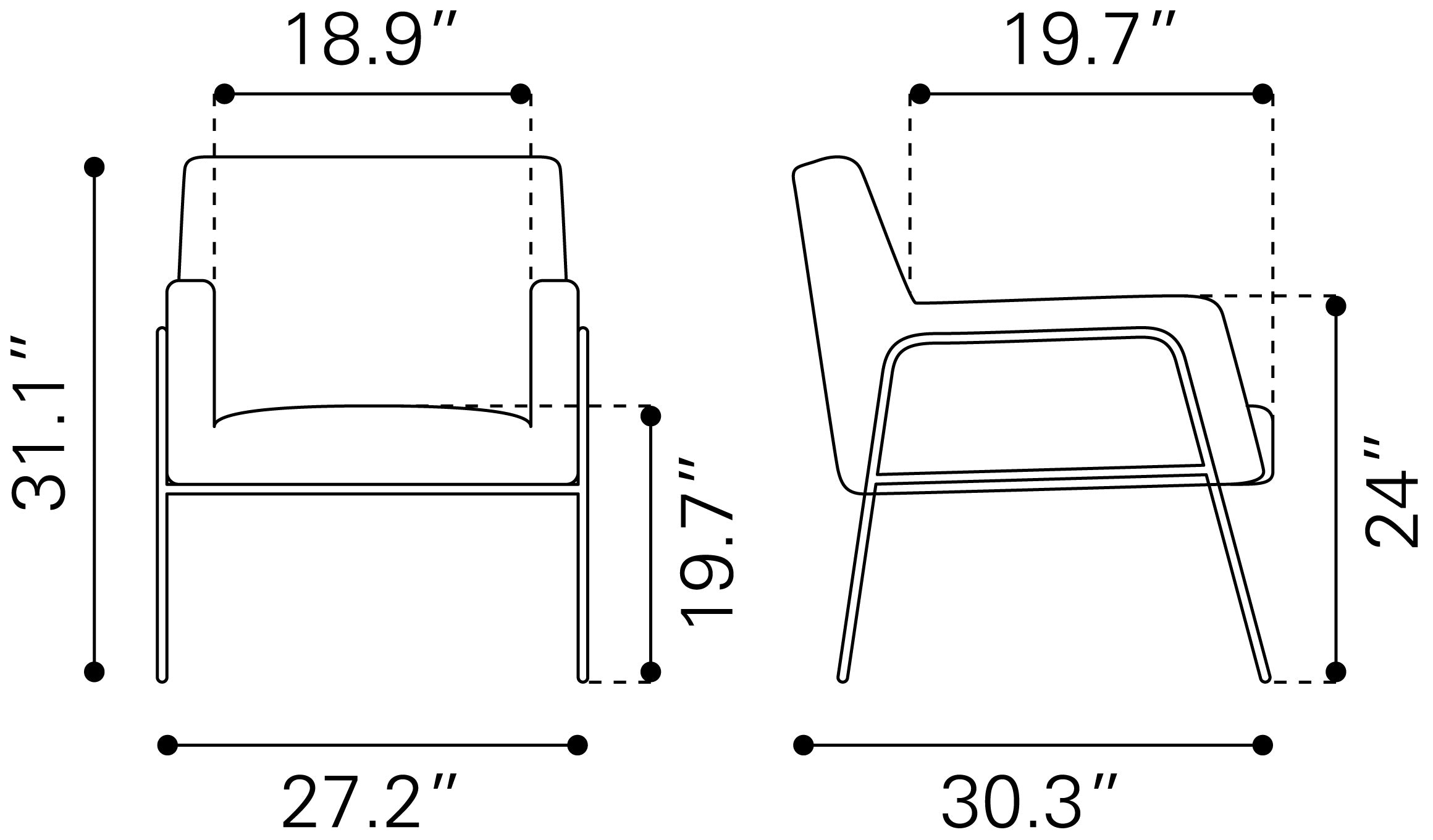 - 18.9" SW x 19.7" SD x 19.7" SH, 24" AH