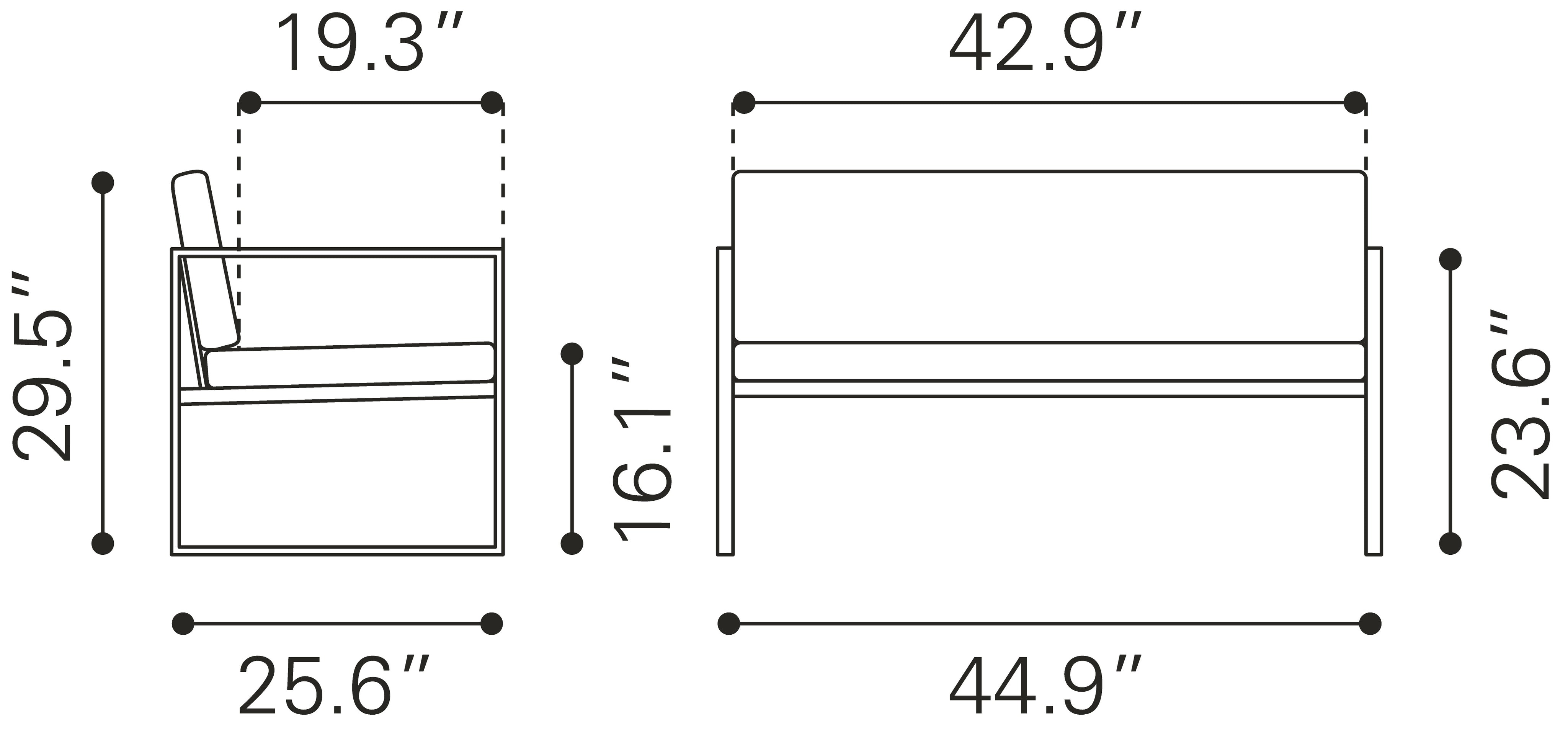 - Product Feature - Seat Dimensions: 48.4" SW x 18.9" SD x 16.5" SH