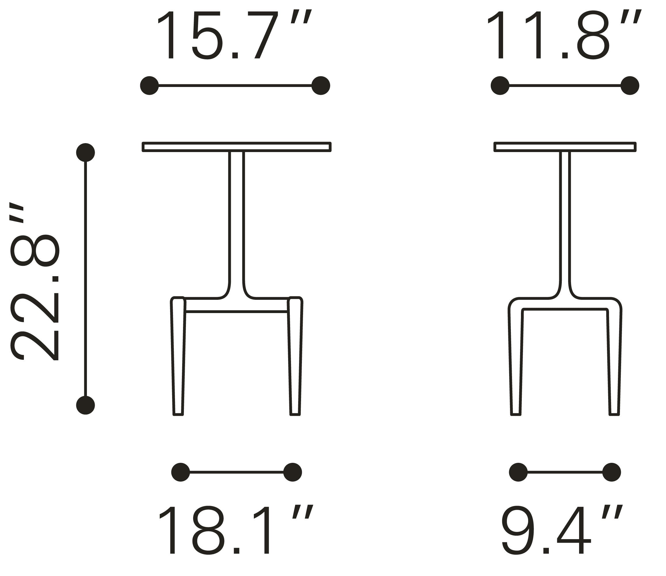 - Table - Distance between side legs (in): 9.1