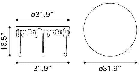 - Dimensions: 31.9W x 31.9D x 16.5H Drip Coffee Table - Aluminum