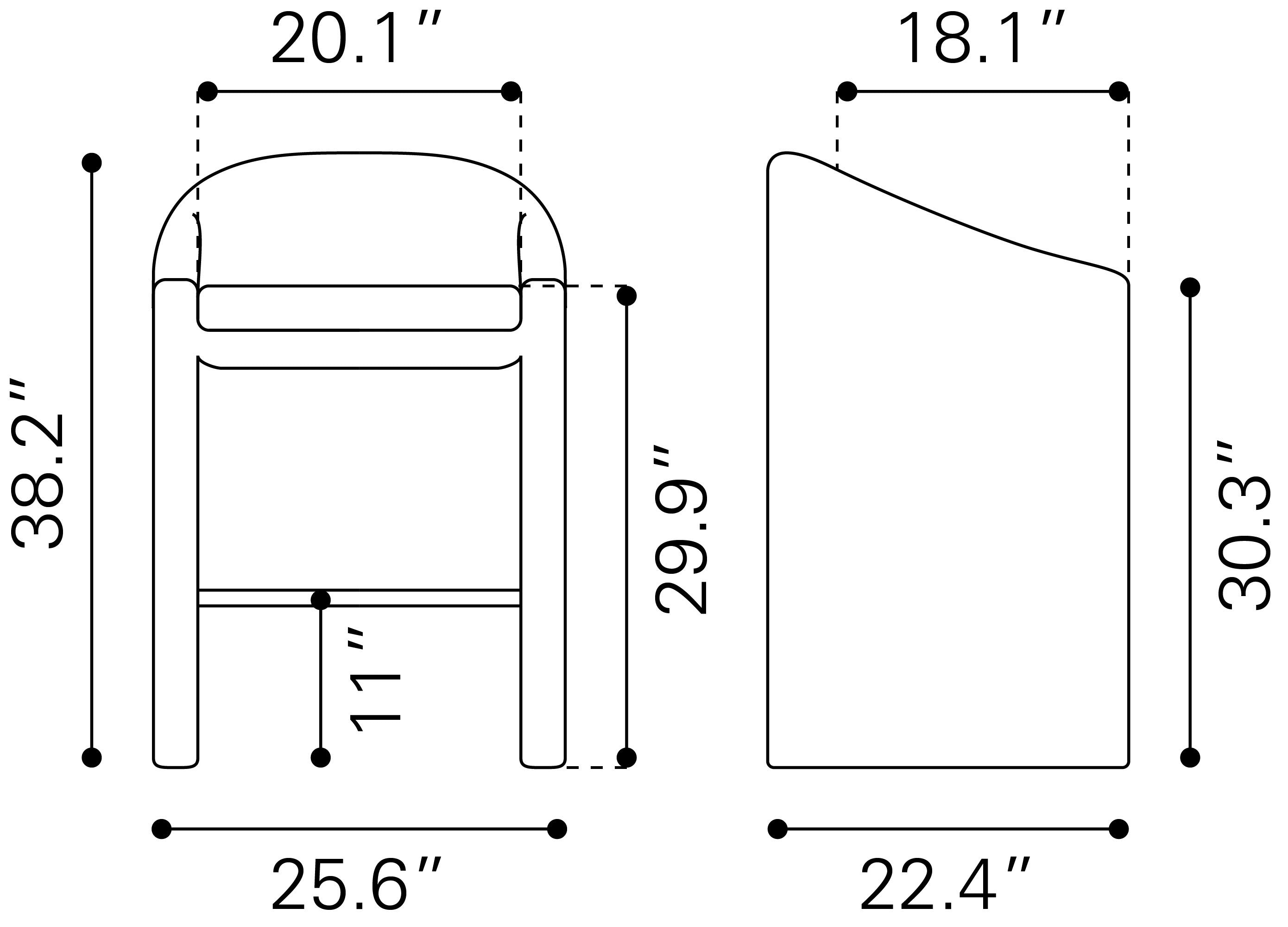 - Color: 109991 Emas Bar/Counter Stool - Bar Height - 25.6W x 22.4D x 38.2H