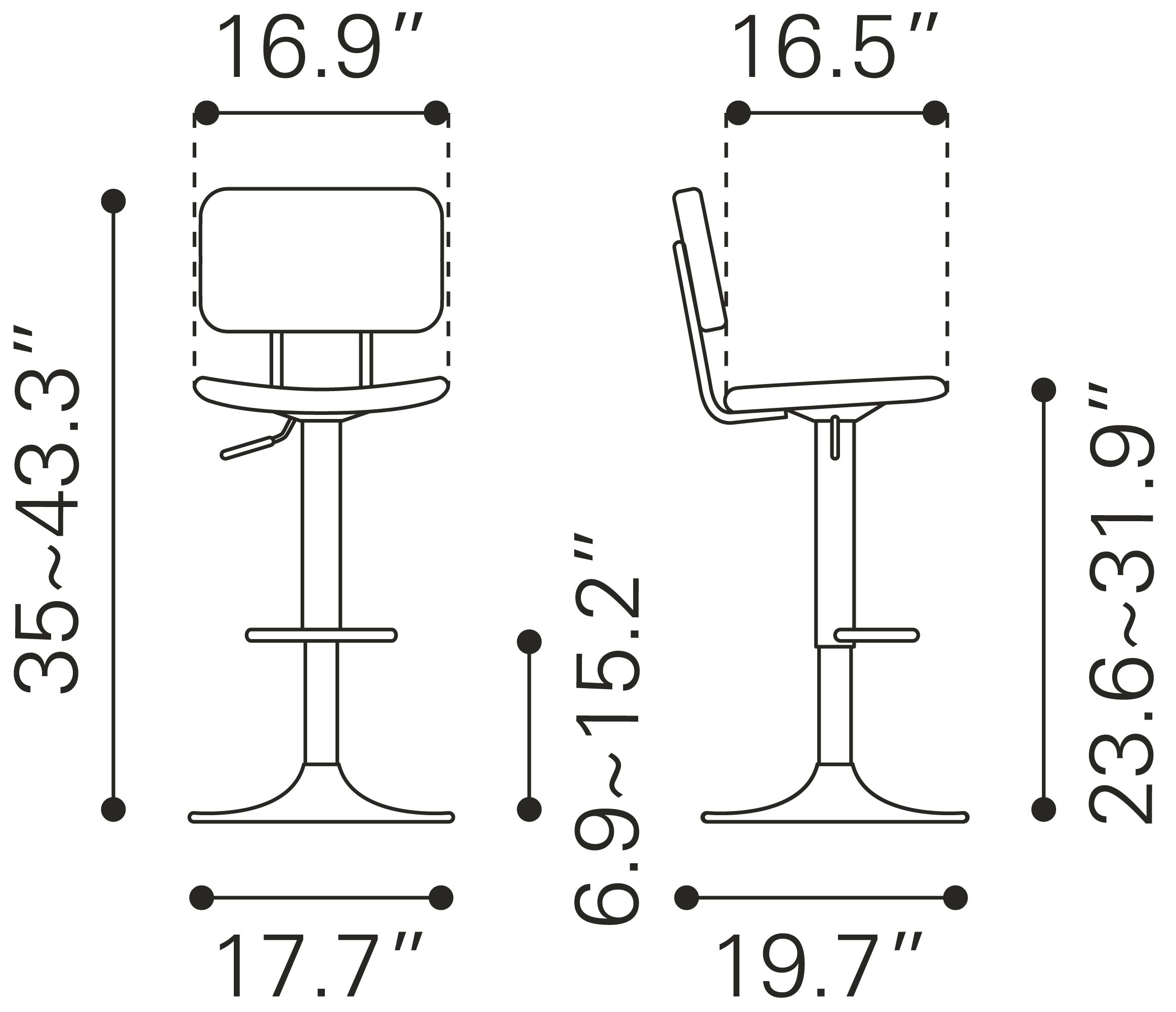 - Product Feature - Seat Dimensions: 16.9" SW x 16.5" SD x 24" SH