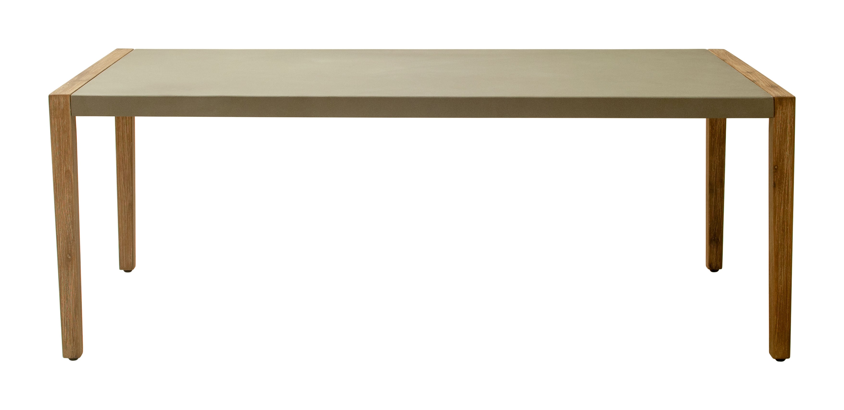 - Assembly required, Faux Concrete Duralcrete rectangular shape tabletop, Seats up to 6, Weather resistant brushed acacia wood frame, Rubber feet protect floor from scratches, Support up to 240 lb