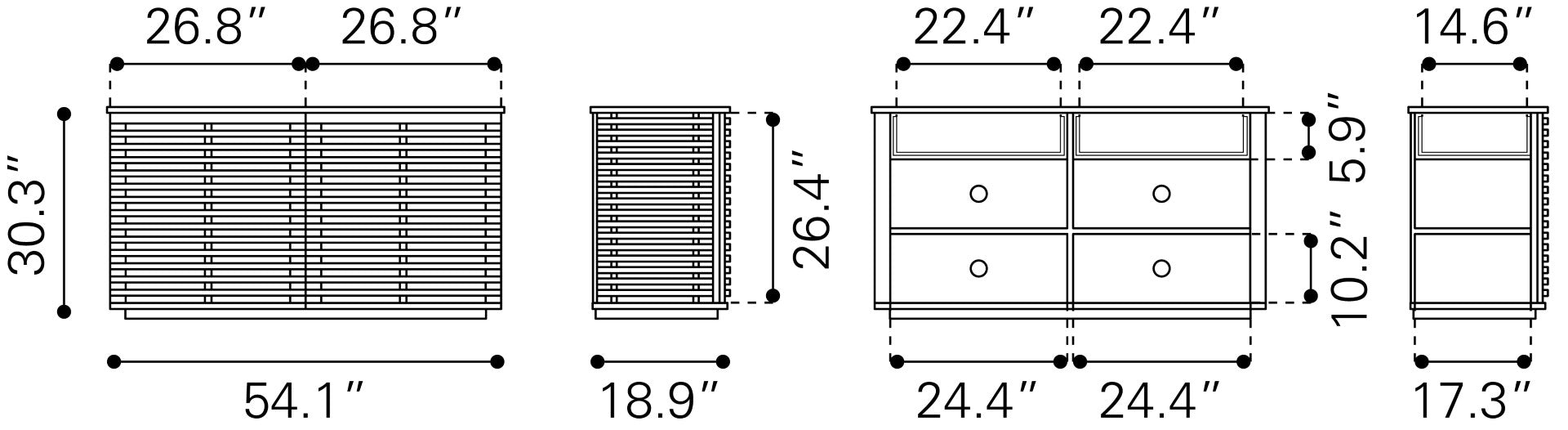 - Features: Product 1 Dimensions: 54.1" W x 18.9" D x 30.3" H