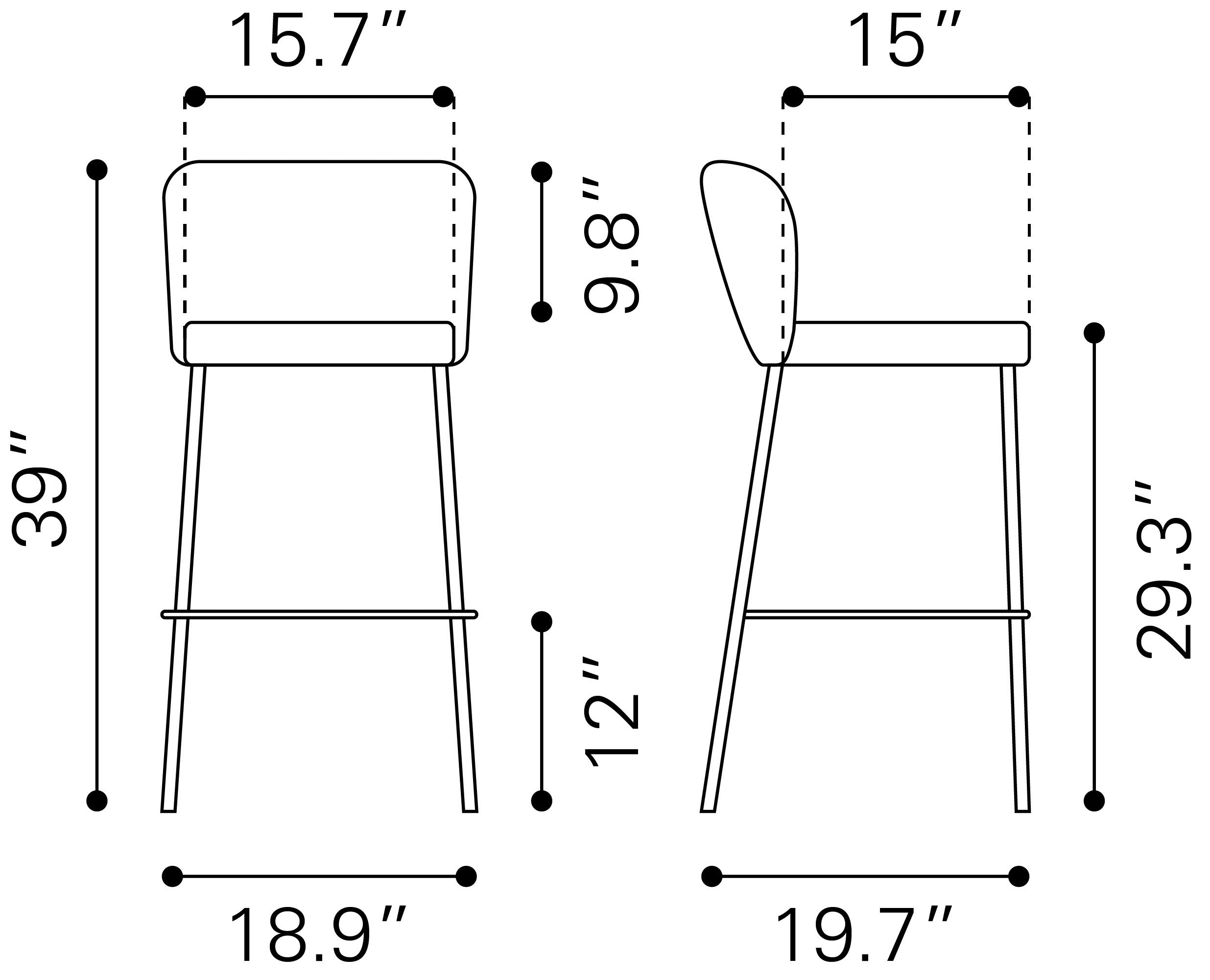 - Dimensions: 18.9W x 19.7D x 35H Linz Bar/Counter Stool - Set of 2 - 100% Polyurethane, Plywood, Steel