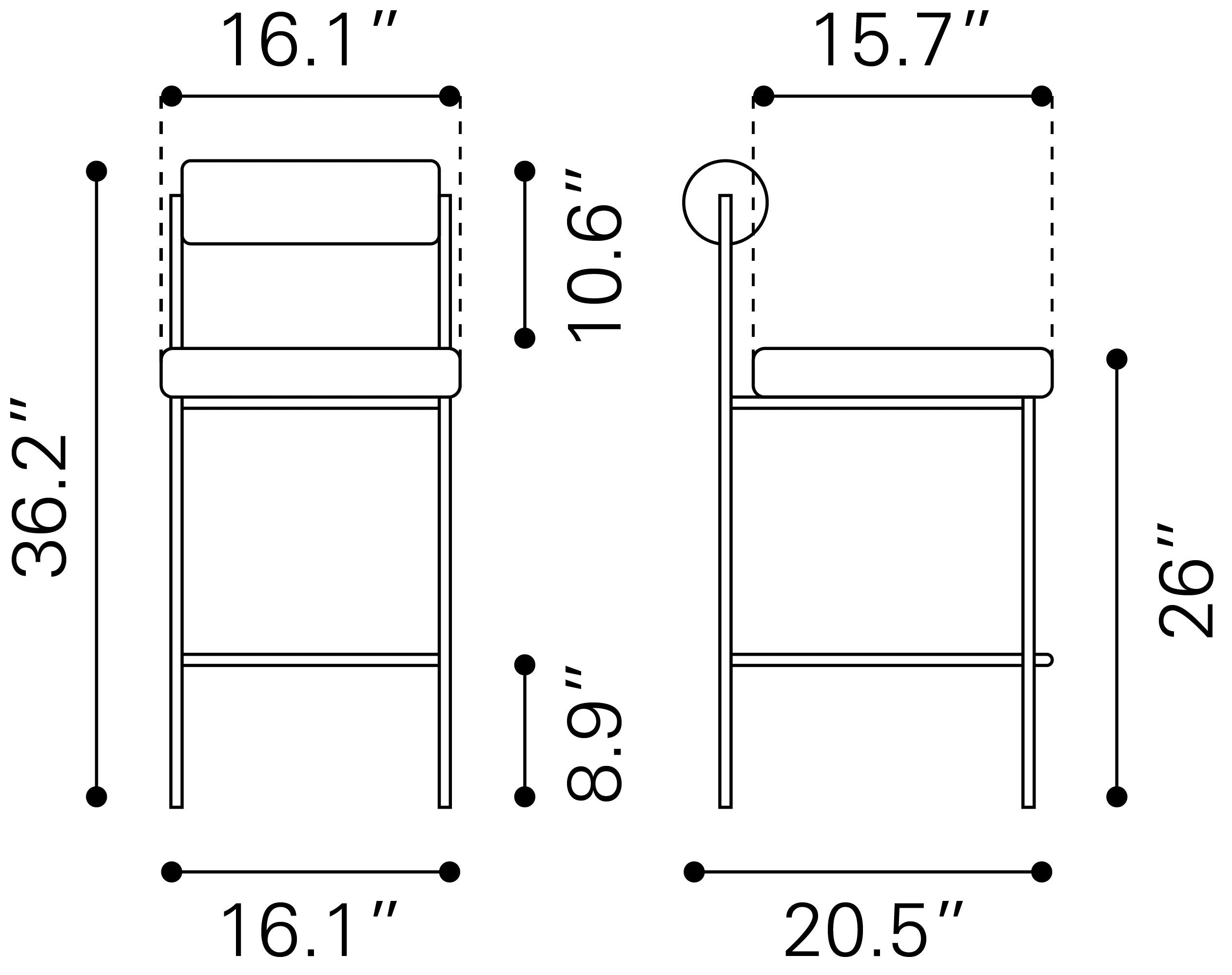 - Dimensions: 16.1W x 20.5D x 36.2H Livorno Bar/Counter Stool - Set of 2 - 100% Polyester, Plywood, Steel