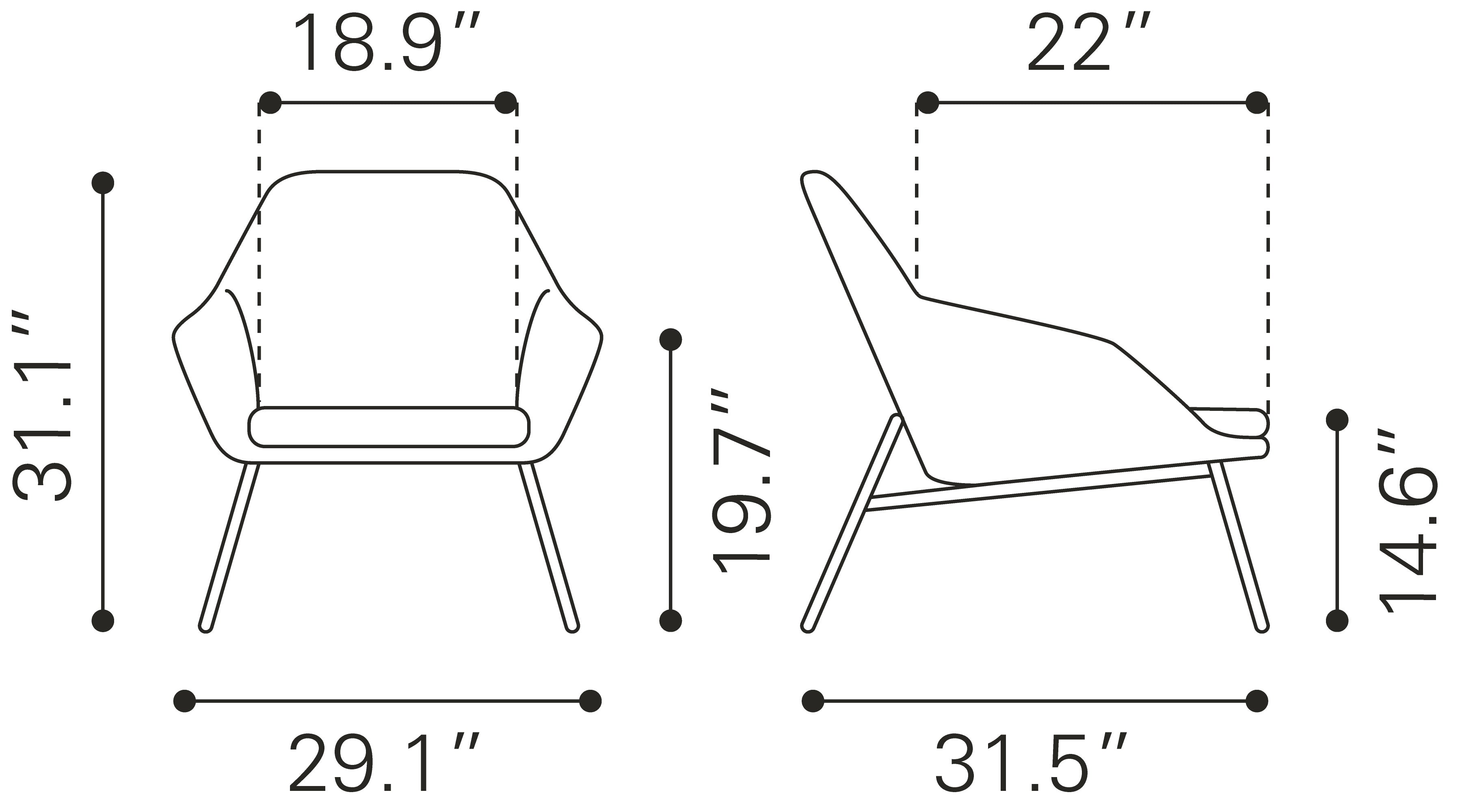 - Product Feature - Seat Dimensions: 18.9" SW x 22" SD x 14.6" SH