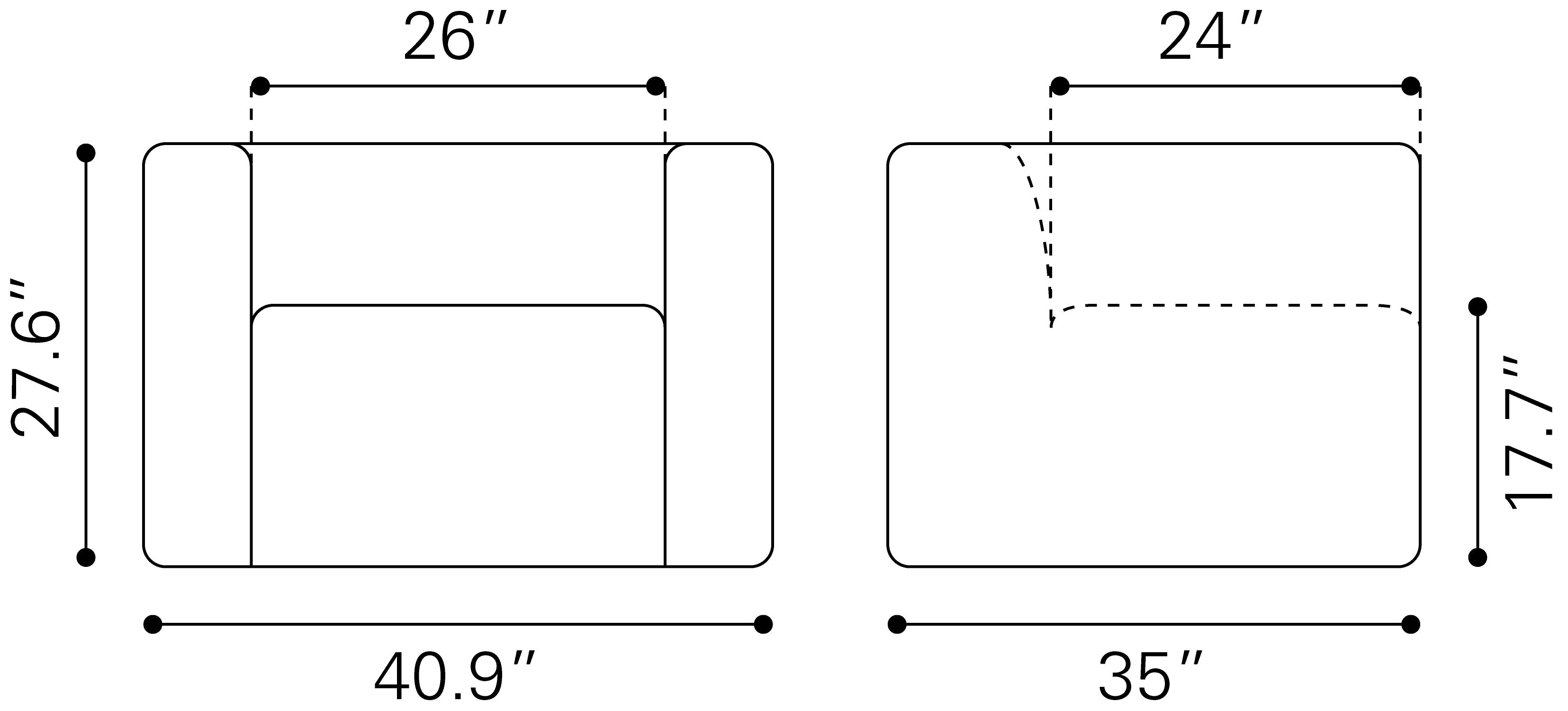 - 26" SW x 24" SD x 17.7" SH, 27.6" AH