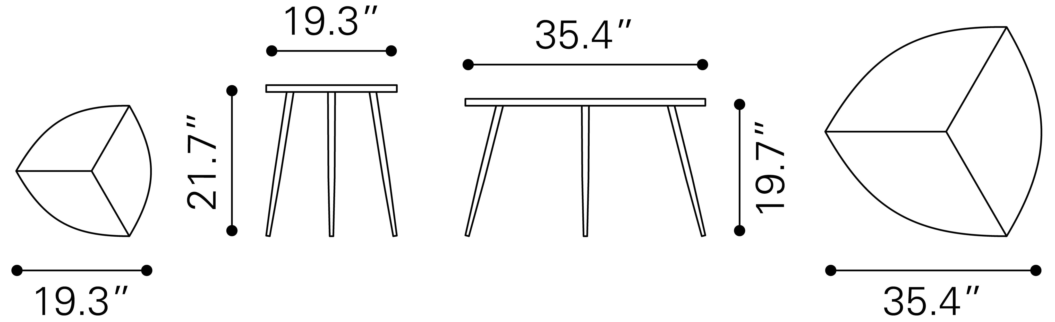 Product 2 Dimensions: 19.3" W x 19.3" D x 20.7" H