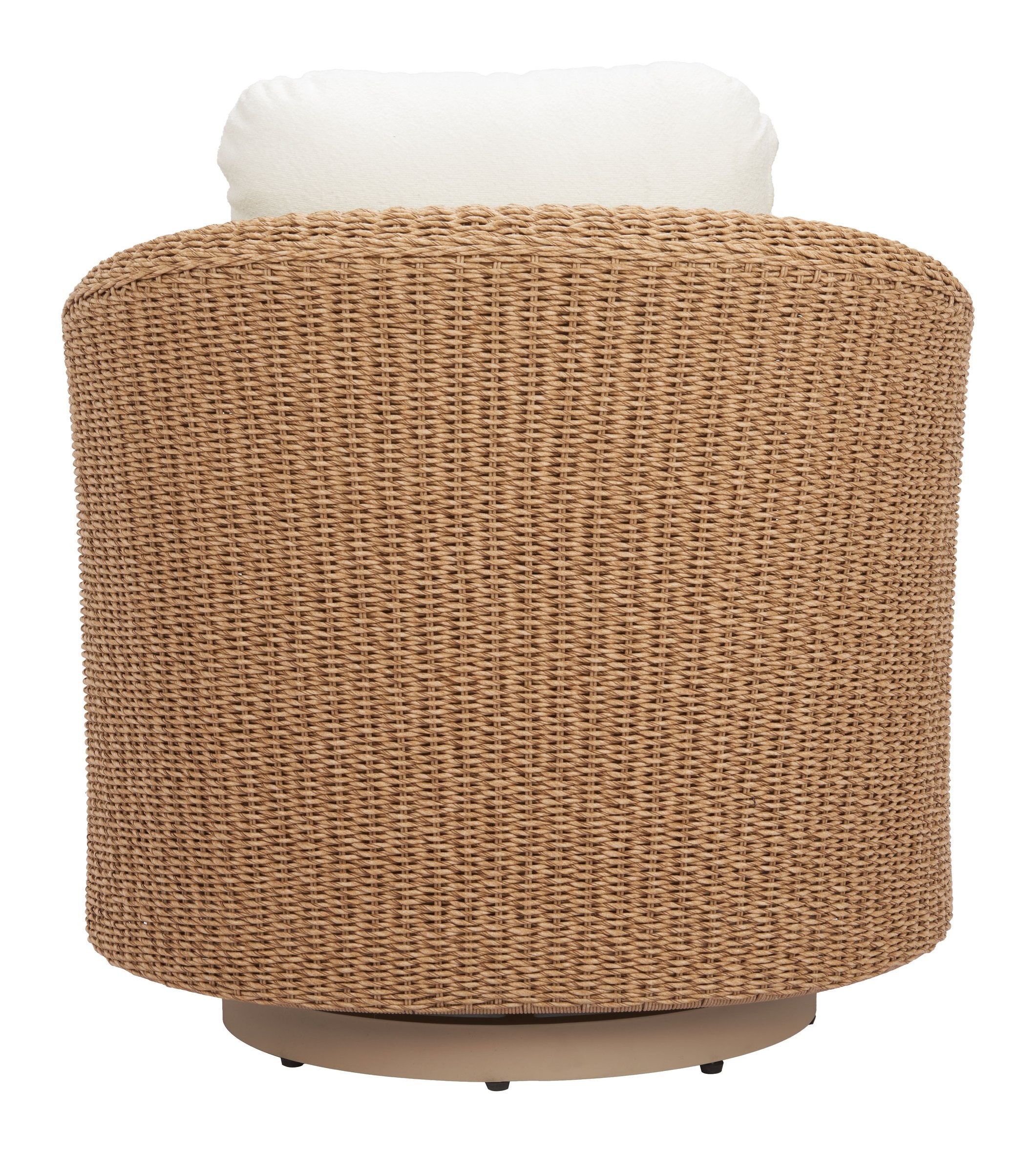- Assembly not required, Removable and washable cushion cover, Outdoor fabric (100% Polyester), Weather resistant powder coated aluminum frame with synthetic rattan weave, Armrest support, 360 Degree swivel base, Powder coated aluminum leg, Rubber feet protect floor from scratches, Support up to 350 lb