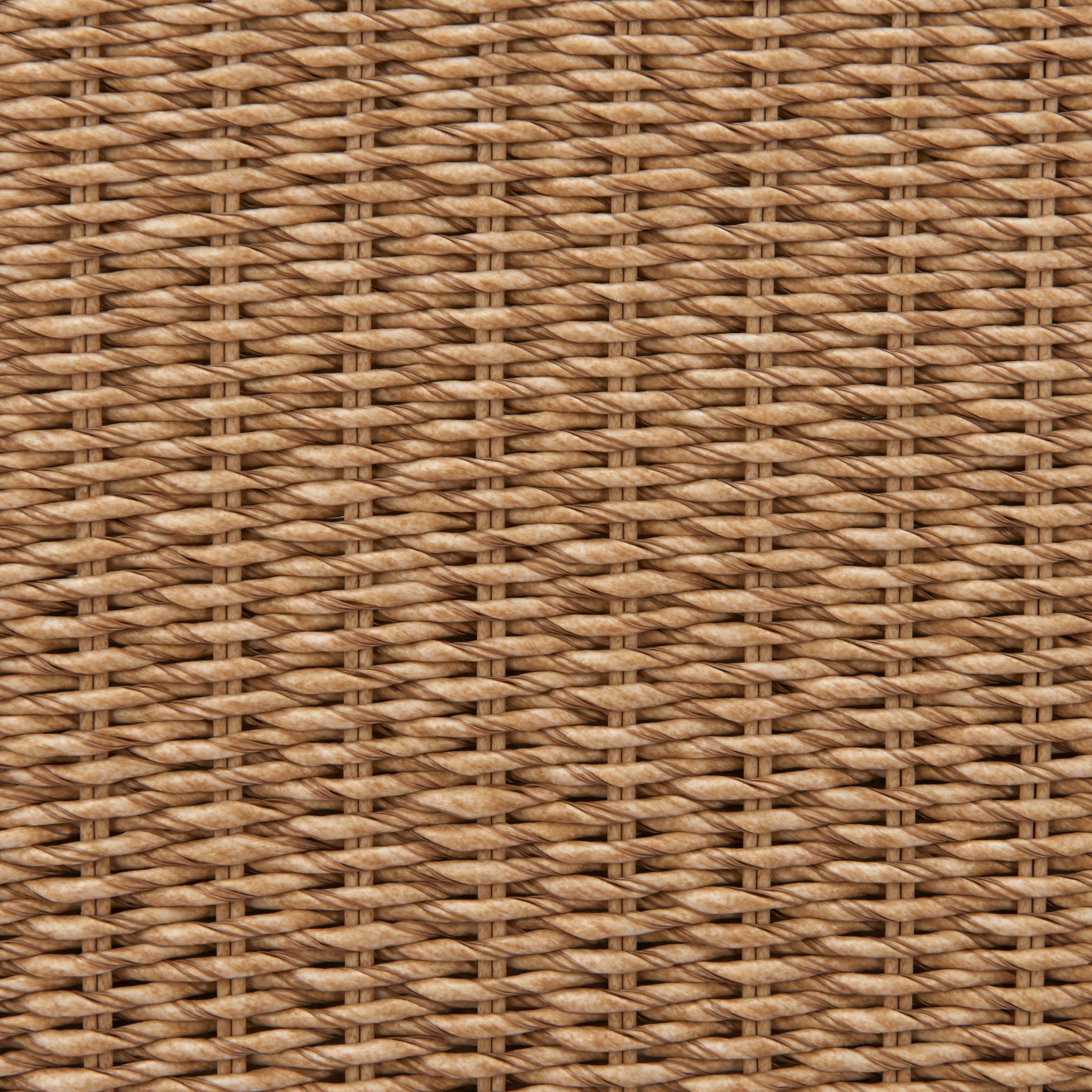 - Product Finishes + Materials (Combined): Outdoor Fabric 100% Polyester, Powder Coated Aluminum, Synthetic Rattan Weave 100% Polyethylene