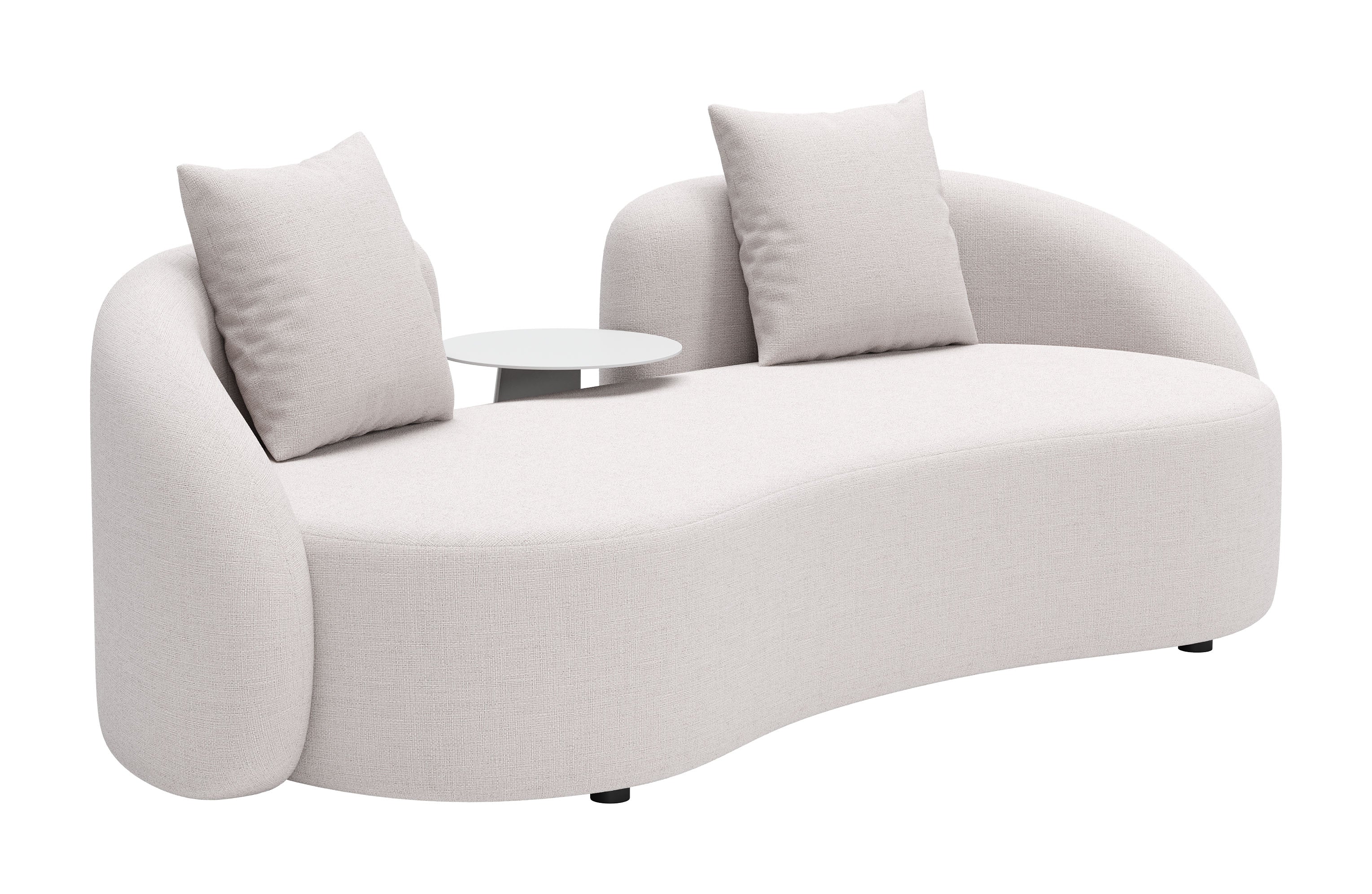 - Bullet List: Assembly not required, Seats up to 3, Removable and washable cushion cover, Outdoor fabric (100% Olefin), Weather resistant aluminum frame, Armrest support, Rubber feet protect floor from scratches, Integrated slot in middle for a slide in side table., Support up to 730 lb