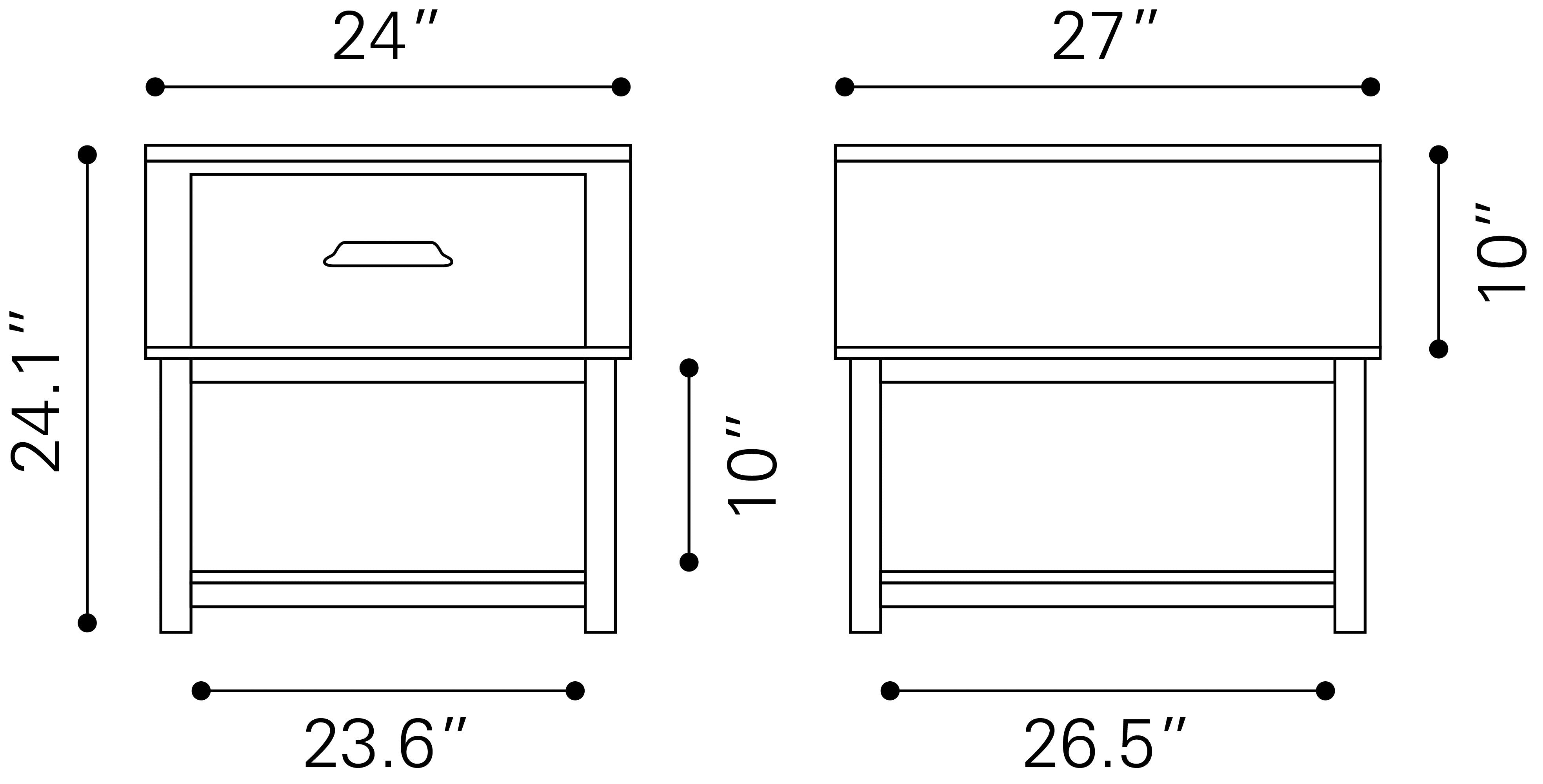 - Bullet List: Assembly required, Square tabletop, Top shelf: 24" W x 27" D, Bottom shelf: 23.6" W x 26.5" D, Support up to 150 lb