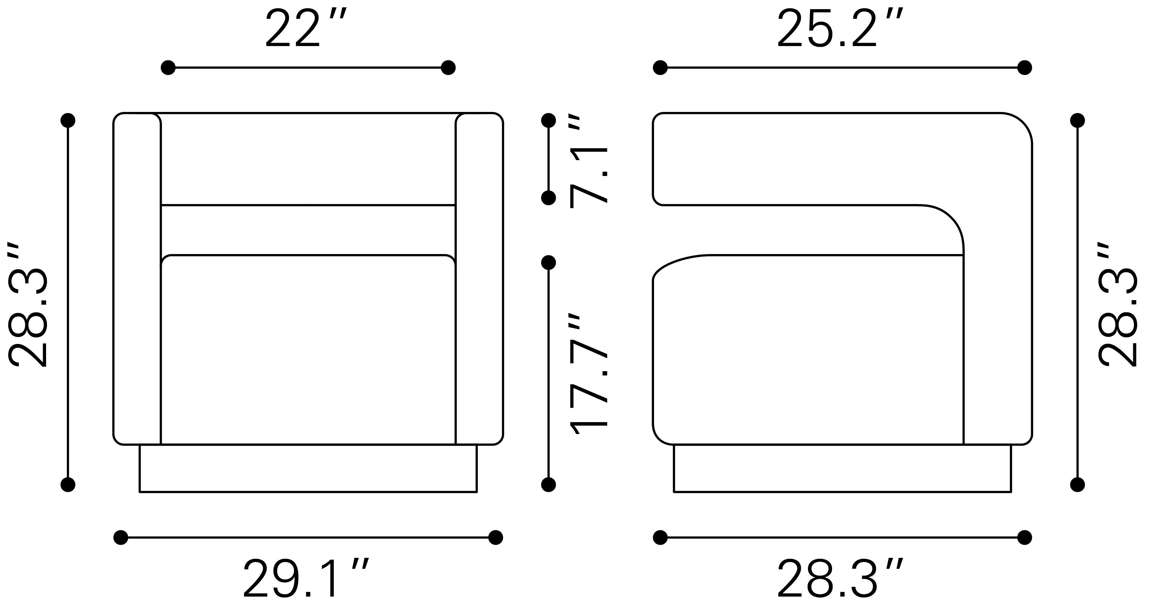 - 22" SW x 25.2" SD x 17.7" SH, 28.3" AH