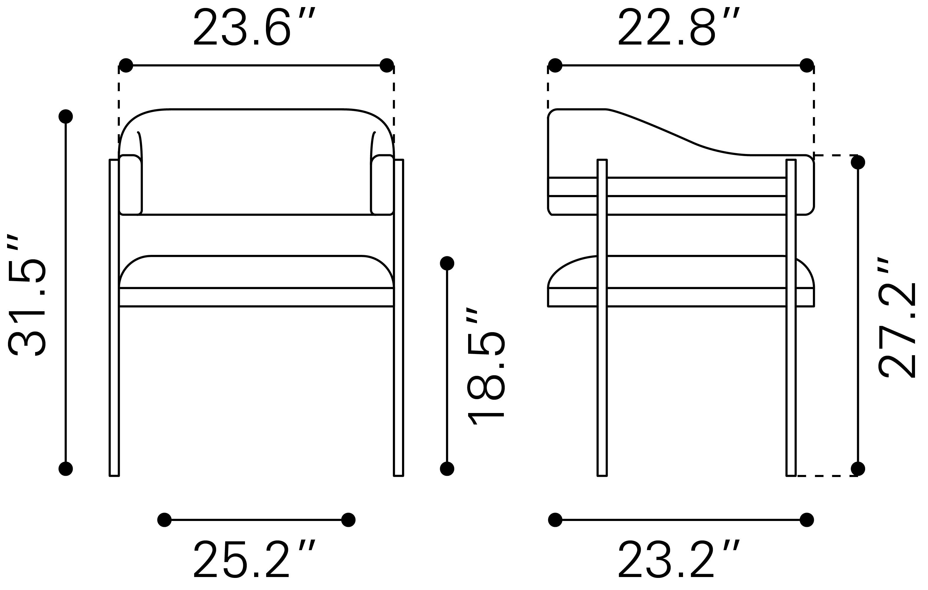 - Dimensions: 25.2W x 23.2D x 31.5H Zadar Dining Chair - 100% Polyester, Plywood, Steel