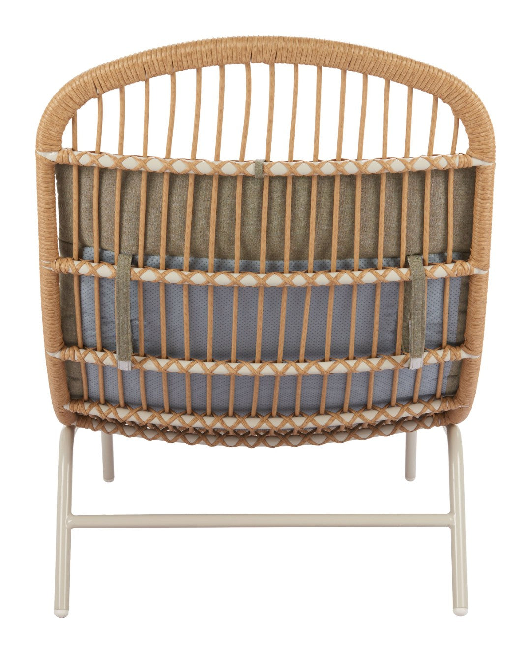 - Product Finishes + Materials (Combined): Outdoor Fabric 100% Olefin, Powder Coated Aluminum, Synthetic Rattan Weave 100% Polyethylene
