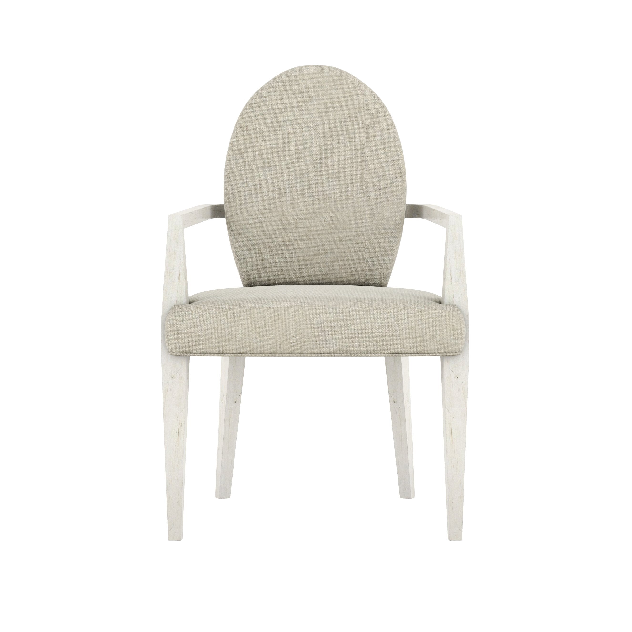 - Seat and back upholstered in a linen-blend, neutral fabric