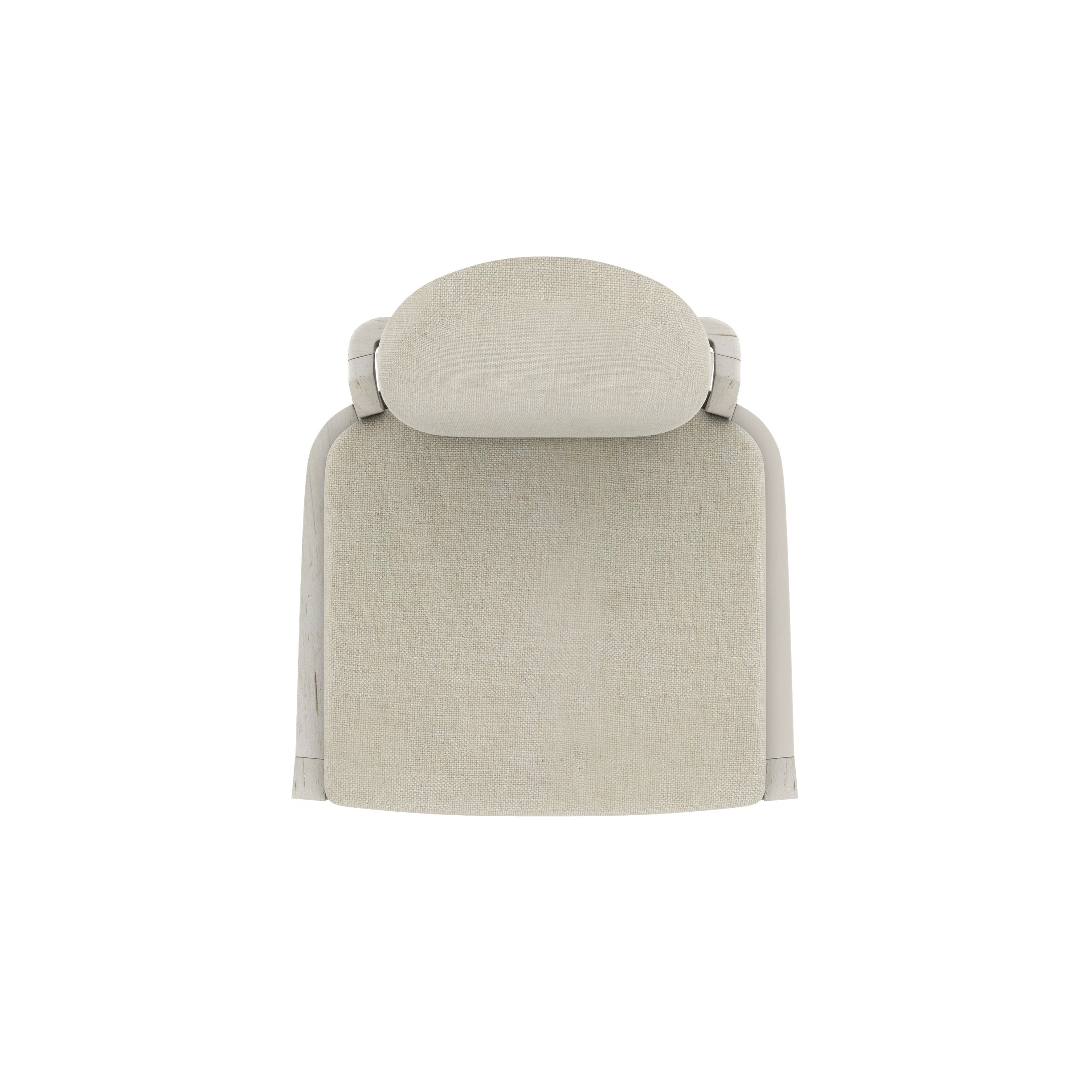 - Seat and back upholstered in a linen-blend, neutral fabric